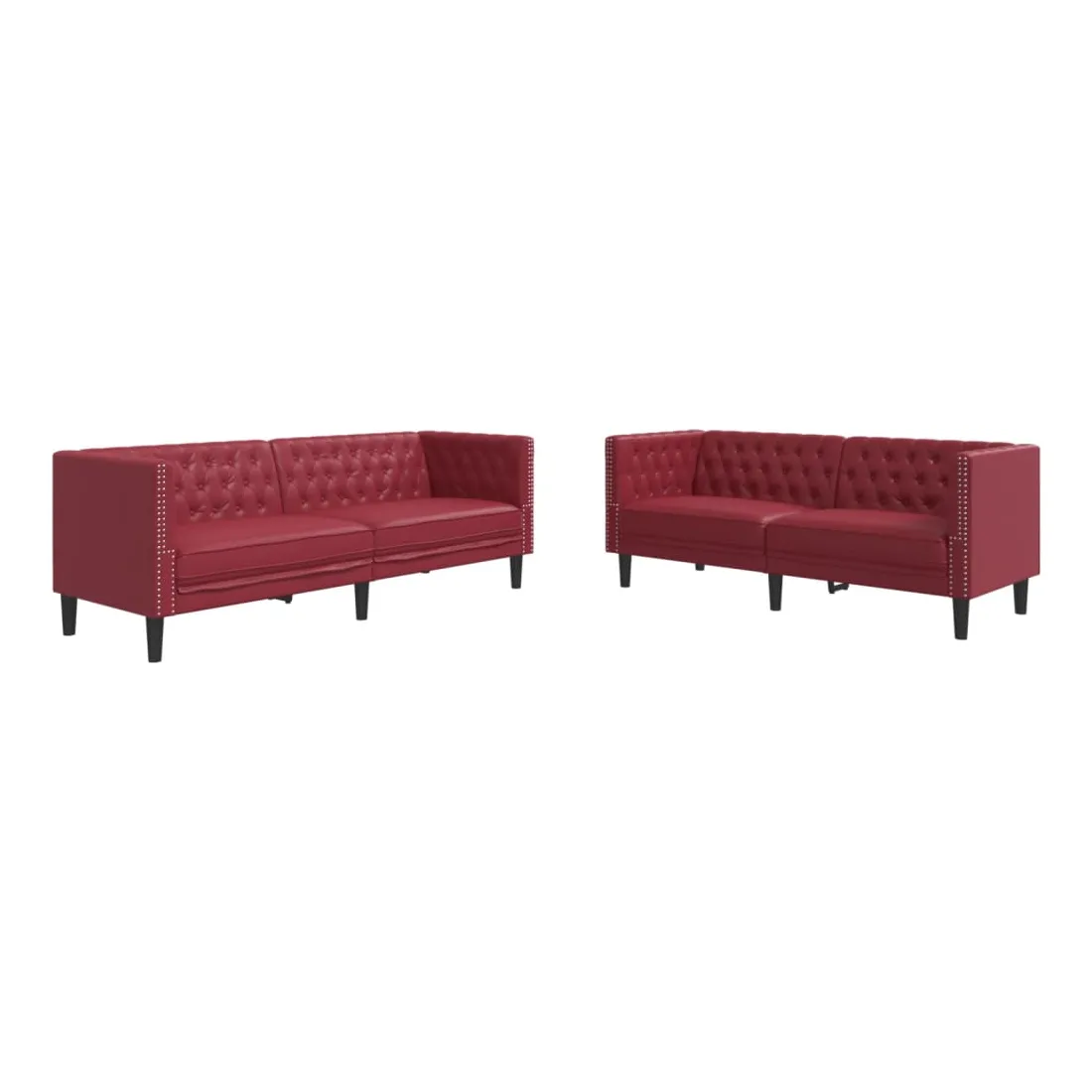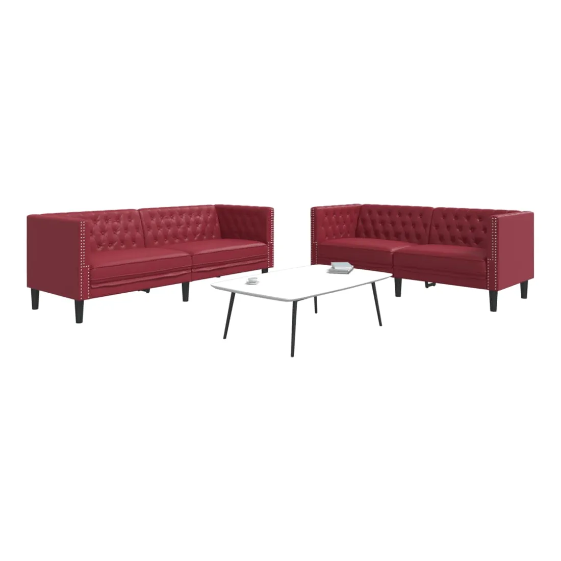 Ensemble de canapés Chesterfield 2pcs rouge bordeaux similicuir