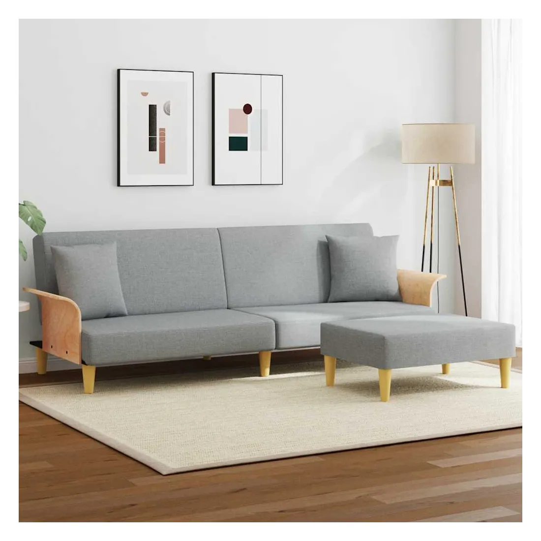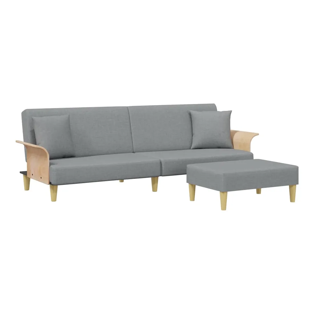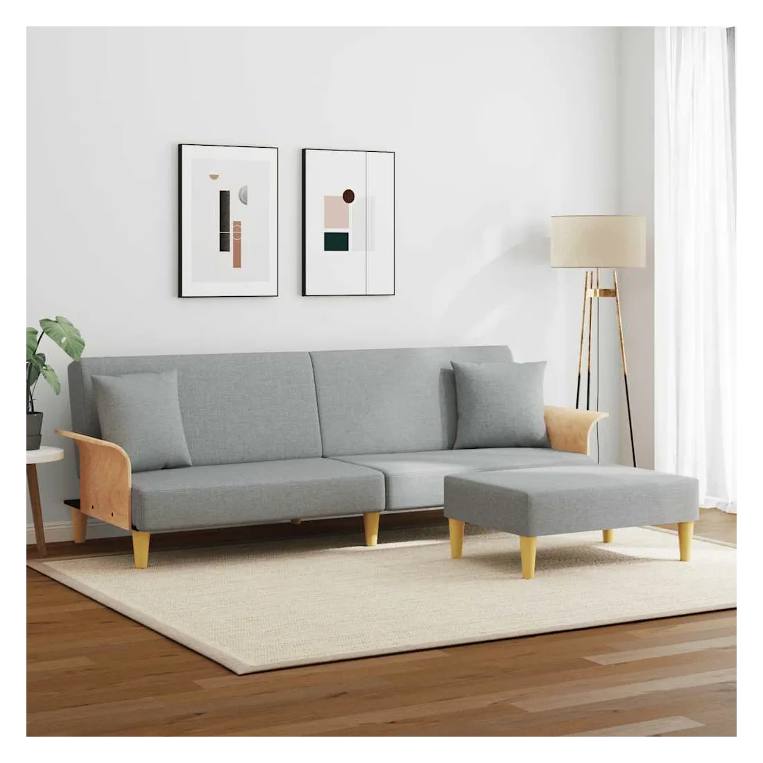 Canapé-lit à 2 places avec oreillers et repose-pied gris clair