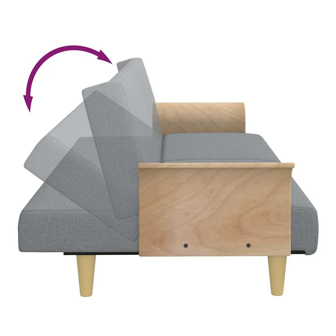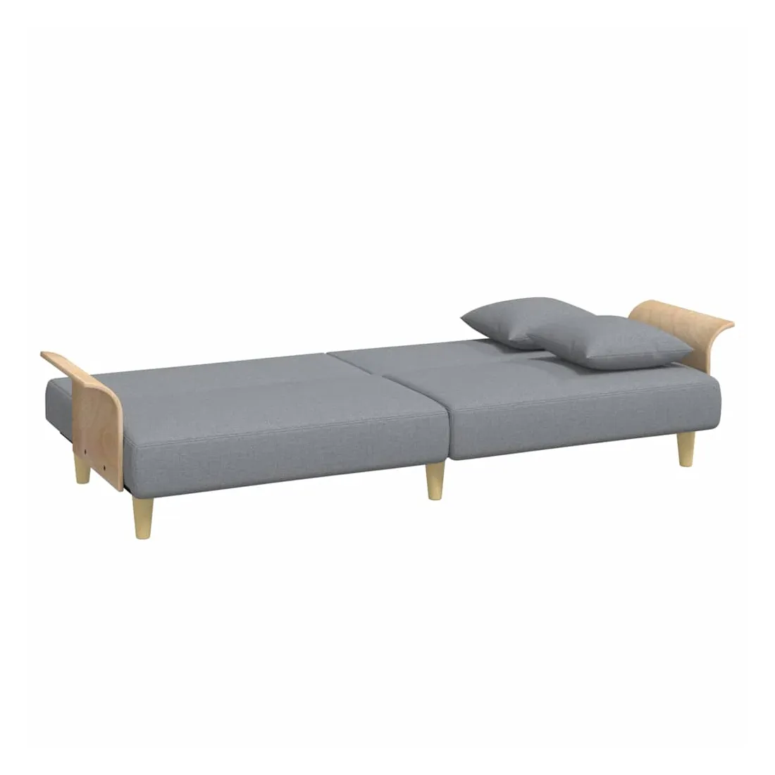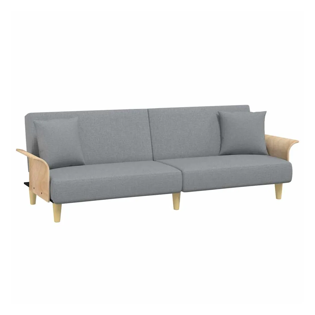 Canapé-lit à 2 places avec oreillers et repose-pied gris clair