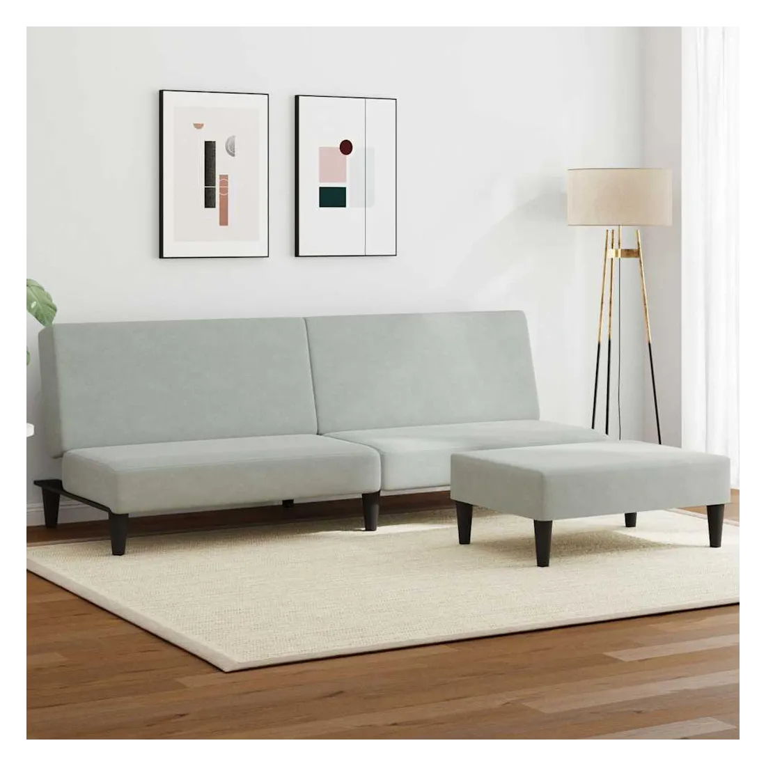 Ce canapé-lit avec repose-pied est une solution parfaite pour accueillir des invités pour la nuit tout en offrant un espace confortable pour s'asseoir pendant la journée. Matériau durable : le velours est un tissu doux et confortable, agréable au toucher.Dossier réglable : vous pouvez pousser les deux coussins de dossier séparés partiellement ou complètement vers le bas pour créer un endroit idéal pour une sieste ou un lit double.Cadre robuste et stable : le cadre en bois du canapé-lit assure robustesse et stabilité.Confort supplémentaire : ce repose-pied est adapté pour y mettre vos pieds en fin de journée ou pour vous offrir un siège supplémentaire dans votre salon ou votre entrée principale.