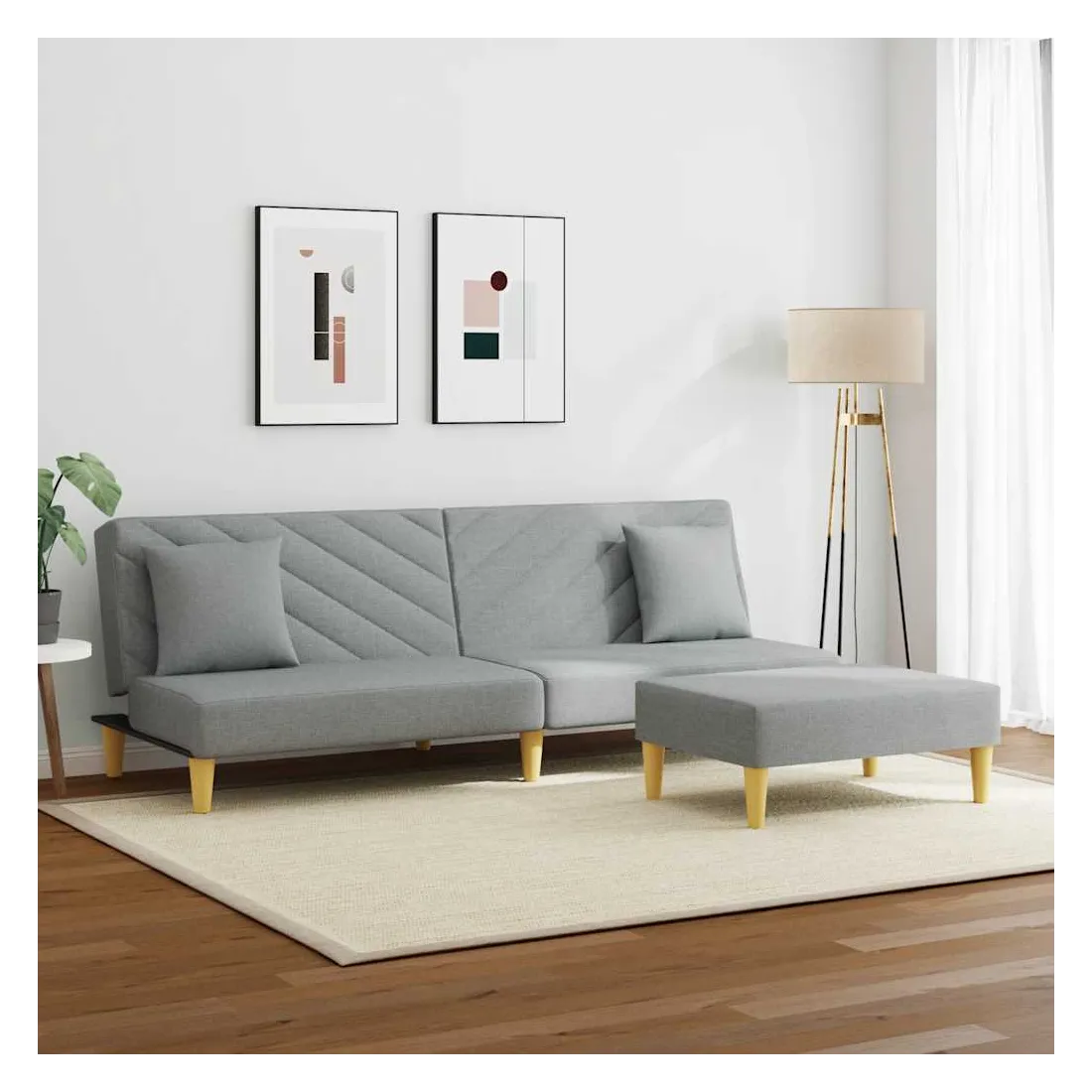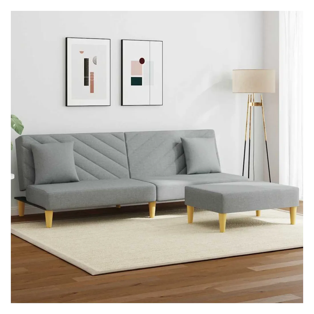 Ce canapé-lit avec repose-pied est une solution parfaite pour accueillir des invités pour la nuit tout en offrant un espace confortable pour s'asseoir pendant la journée. Matériau durable : le tissu présente un aspect simple et épuré, et il est respirant et durable.Dossier réglable : vous pouvez pousser les deux coussins de dossier séparés partiellement ou complètement vers le bas pour créer un endroit idéal pour une sieste ou un lit double.Cadre robuste et stable : le cadre en bois du canapé-lit assure robustesse et stabilité.Confort supplémentaire : ce repose-pied est adapté pour y mettre vos pieds en fin de journée ou pour vous offrir un siège supplémentaire dans votre salon ou votre entrée principale.