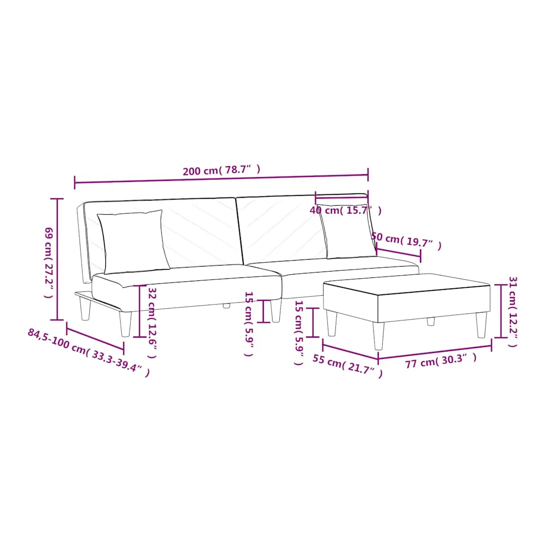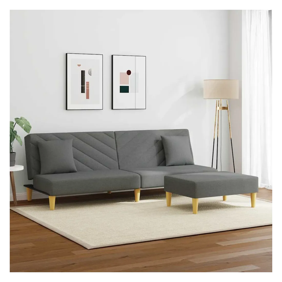 Ce canapé-lit avec repose-pied est une solution parfaite pour accueillir des invités pour la nuit tout en offrant un espace confortable pour s'asseoir pendant la journée. Matériau durable : le tissu présente un aspect simple et épuré, et il est respirant et durable.Dossier réglable : vous pouvez pousser les deux coussins de dossier séparés partiellement ou complètement vers le bas pour créer un endroit idéal pour une sieste ou un lit double.Cadre robuste et stable : le cadre en bois du canapé-lit assure robustesse et stabilité.Confort supplémentaire : ce repose-pied est adapté pour y mettre vos pieds en fin de journée ou pour vous offrir un siège supplémentaire dans votre salon ou votre entrée principale.