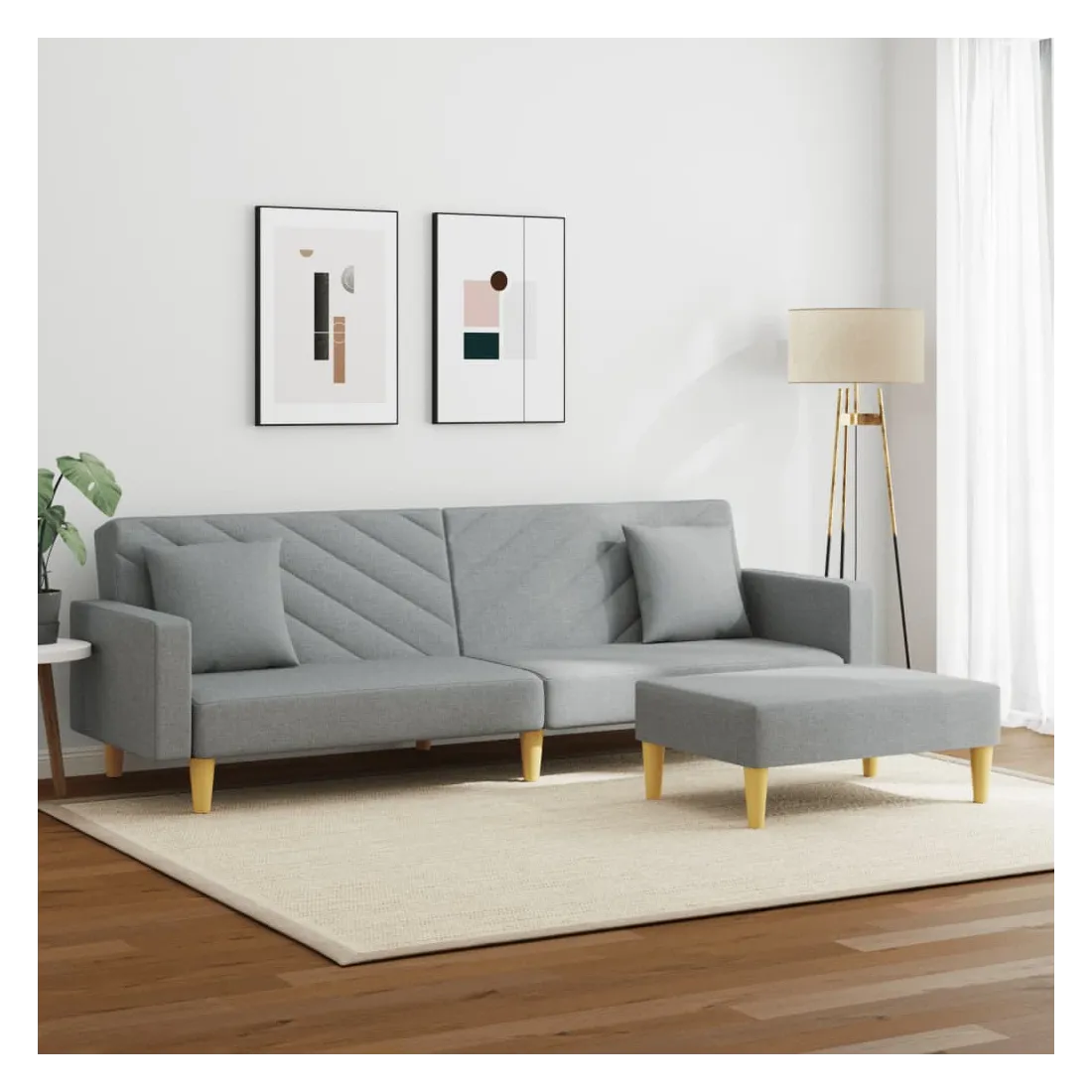 Ce canapé-lit avec repose-pied est une solution parfaite pour accueillir des invités pour la nuit tout en offrant un espace confortable pour s'asseoir pendant la journée. Matériau durable : le tissu présente un aspect simple et épuré, et il est respirant et durable.Dossier réglable : vous pouvez pousser les deux coussins de dossier séparés partiellement ou complètement vers le bas pour créer un endroit idéal pour une sieste ou un lit double.Cadre robuste et stable : le cadre en bois du canapé-lit assure robustesse et stabilité.Confort supplémentaire : ce repose-pied est adapté pour y mettre vos pieds en fin de journée ou pour vous offrir un siège supplémentaire dans votre salon ou votre entrée principale.