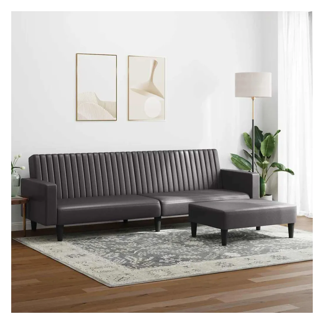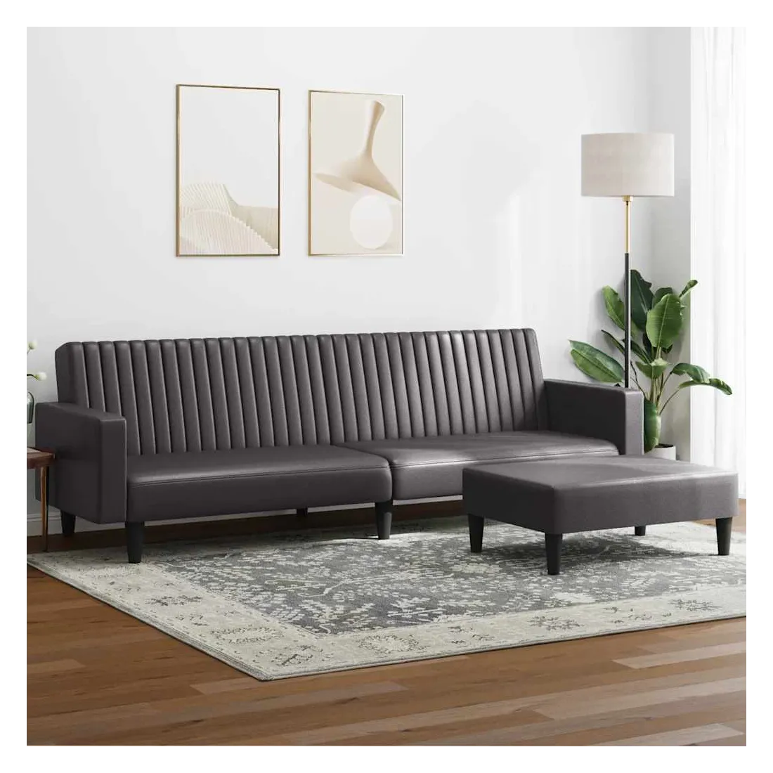 Cet ensemble de canapés est un excellent endroit pour discuter, lire, regarder la télévision ou simplement vous détendre. Il est destiné à être un point central de votre maison. Similicuir durable : le similicuir de qualité supérieure est un matériau très durable. Il est résistant aux taches, ce qui le rend facile à nettoyer avec un chiffon humide. La surface lisse donne également un aspect luxueux et la beauté du cuir véritable. Fonction 2 en 1 : le canapé-lit se transforme rapidement et facilement d'un canapé en un lit et à nouveau en canapé. Vous pouvez pousser les deux dossiers séparés partiellement ou complètement vers le bas pour créer un endroit idéal pour une sieste ou un lit double. Pouf polyvalent : ce repose-pied convient pour reposer vos pieds lorsque vous êtes allongé dans un canapé, ou pour vous offrir un siège supplémentaire dans votre pièce. De plus, le design simple et la taille compacte le rendent idéal pour presque tous vos espaces de vie. Expérience de siège confortable : la chaise de canapé est très confortable grâce à l'assise et au dossier très rembourrés. Pieds de soutien : le canapé rembourré est soutenu par des pieds robustes, qui assurent sa stabilité, sa sécurité et sa fermeté.