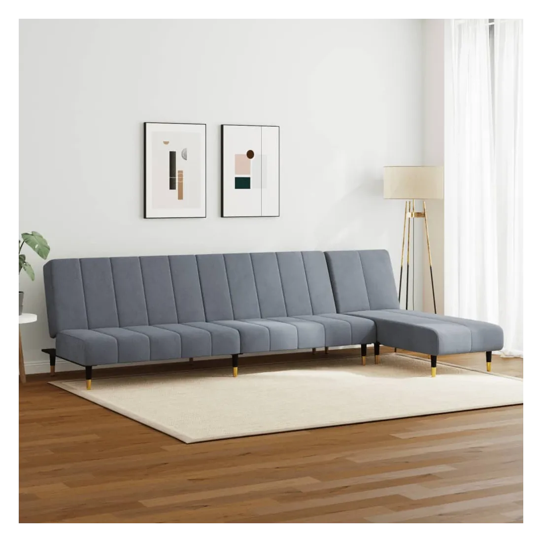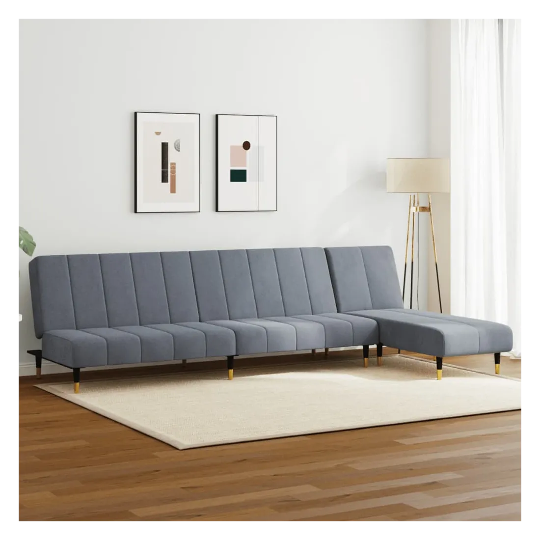 Cet ensemble de canapés est un excellent endroit pour discuter, lire, regarder la télévision ou simplement vous détendre. Il est destiné à être un point central de votre maison. Velours doux : le velours est un tissu doux et confortable, agréable au toucher.Fonction 2 en 1 : le canapé-lit se transforme rapidement et facilement d'un canapé en un lit et à nouveau en canapé. Vous pouvez pousser les deux dossiers séparés partiellement ou complètement vers le bas pour créer un endroit idéal pour une sieste ou un lit double. Chaise longue multifonctionnelle : la chaise longue est un choix judicieux pour les espaces limités. Elle offre trois positions convertibles pour s'asseoir, se prélasser et dormir. Elle peut donc être une chaise longue inclinable confortable pour un usage quotidien ou un lit temporaire pour les invités.Expérience de siège confortable : le canapé de relaxation est très confortable grâce à l'assise et au dossier bien rembourrés.Cadre solide et stable : ce canapé est doté d’un cadre en bois qui offre stabilité et robustesse.