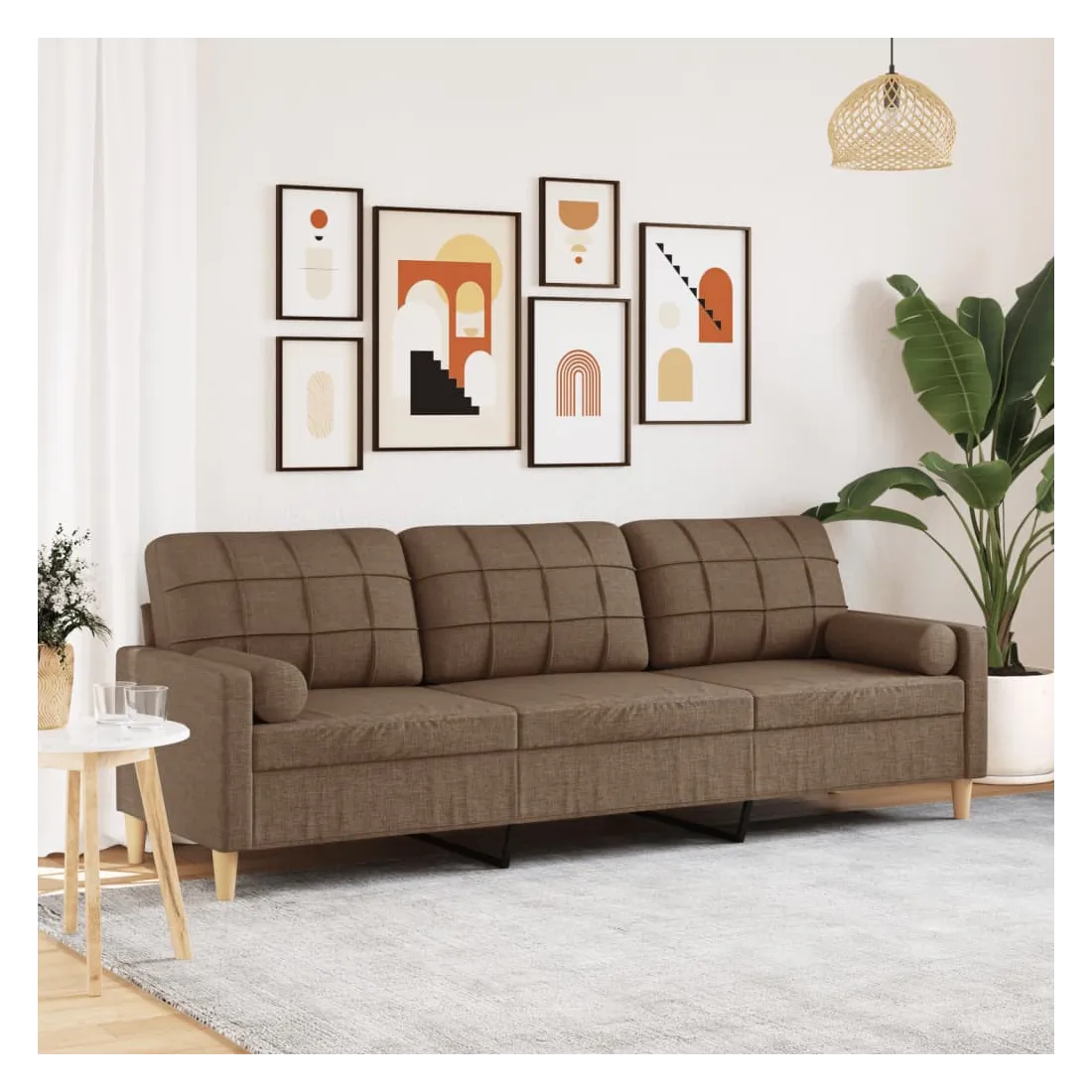 Ce canapé à 3 places est un excellent endroit pour discuter, lire, regarder la télévision ou simplement vous détendre. Il est destiné à être un point central dans votre maison. Matériau doux et durable : le tissu en polyester offre une combinaison de douceur, de respirabilité et de durabilité, vous garantissant un confort et une convivialité ultimes.Cadre robuste et stable : le cadre en métal du canapé de salon assure robustesse et stabilité.Expérience d'assise confortable : le canapé est très confortable avec les sièges, les accoudoirs et les oreillers de dossier bien rembourrés.Housses d'oreillers amovibles : grâce à la fermeture éclair, les housses de ces oreillers de traversin sont faciles à retirer et à nettoyer en cas de besoin.Design accrocheur : doté d'un design simple mais moderne, ce canapé est destiné à attirer l'attention dans votre chambre.