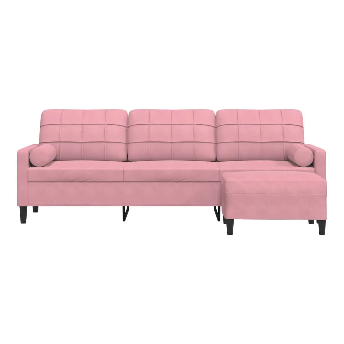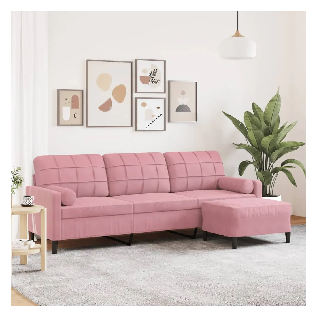 Ce canapé à 3 places est un excellent endroit pour discuter, lire, regarder la télévision ou simplement vous détendre. Il est destiné à être un point central dans votre maison. Matériau doux et confortable : le tissu en velours présente une surface douce et lisse qui offre une sensation agréable contre la peau, vous apportant chaleur et confort ultime.Cadre robuste et stable : le cadre en métal du canapé de salon assure robustesse et stabilité.Expérience d'assise confortable : le canapé est très confortable avec les sièges, les accoudoirs et les oreillers de dossier bien rembourrés.Pouf polyvalent : le tabouret est polyvalent, servant de repose-pieds confortable lorsque vous vous allongez sur le canapé ou de siège supplémentaire dans votre jardin. De plus, le design simple et la taille compacte le rendent idéal pour presque tous vos espaces de vie.Design accrocheur : doté d'un design simple mais moderne, ce canapé est destiné à attirer l'attention dans votre chambre.