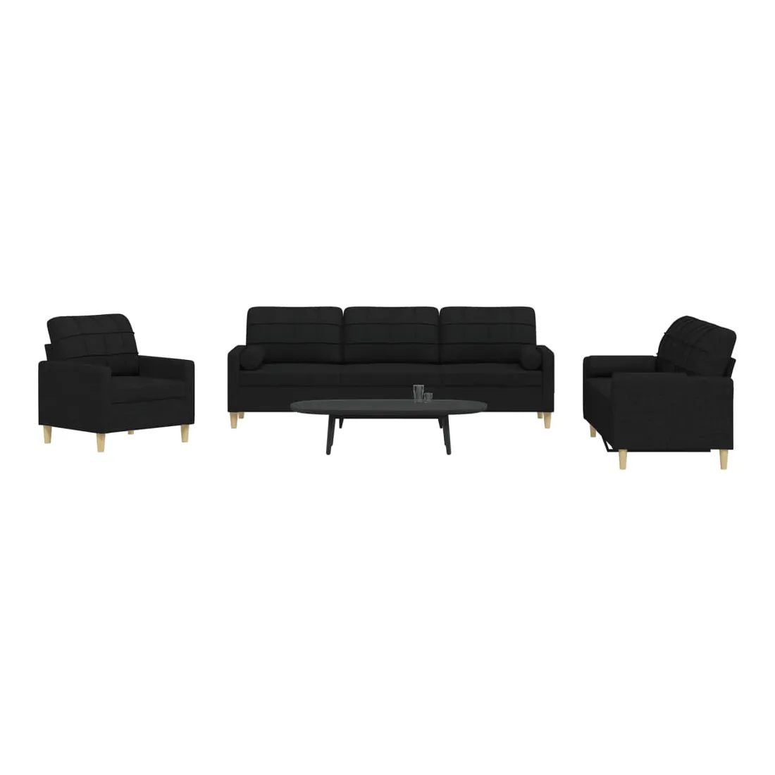 Cet ensemble de canapés est un excellent endroit pour discuter, lire, regarder la télévision ou simplement vous détendre. Il est destiné à être un point central de votre maison. Matériau doux et durable : le tissu en polyester offre une combinaison de douceur, de respirabilité et de durabilité, vous garantissant un confort et une convivialité ultimes. Cadre robuste et stable : le cadre en métal du canapé en tissu assure robustesse et stabilité. Expérience d'assise confortable : le canapé est très confortable avec les sièges, les accoudoirs et les oreillers de dossier bien rembourrés. Oreillers cylindriques pratiques : ces oreillers cylindriques non seulement embellissent votre décor, mais ils peuvent également apporter un confort supplémentaire lorsque vous êtes assis ou allongé.