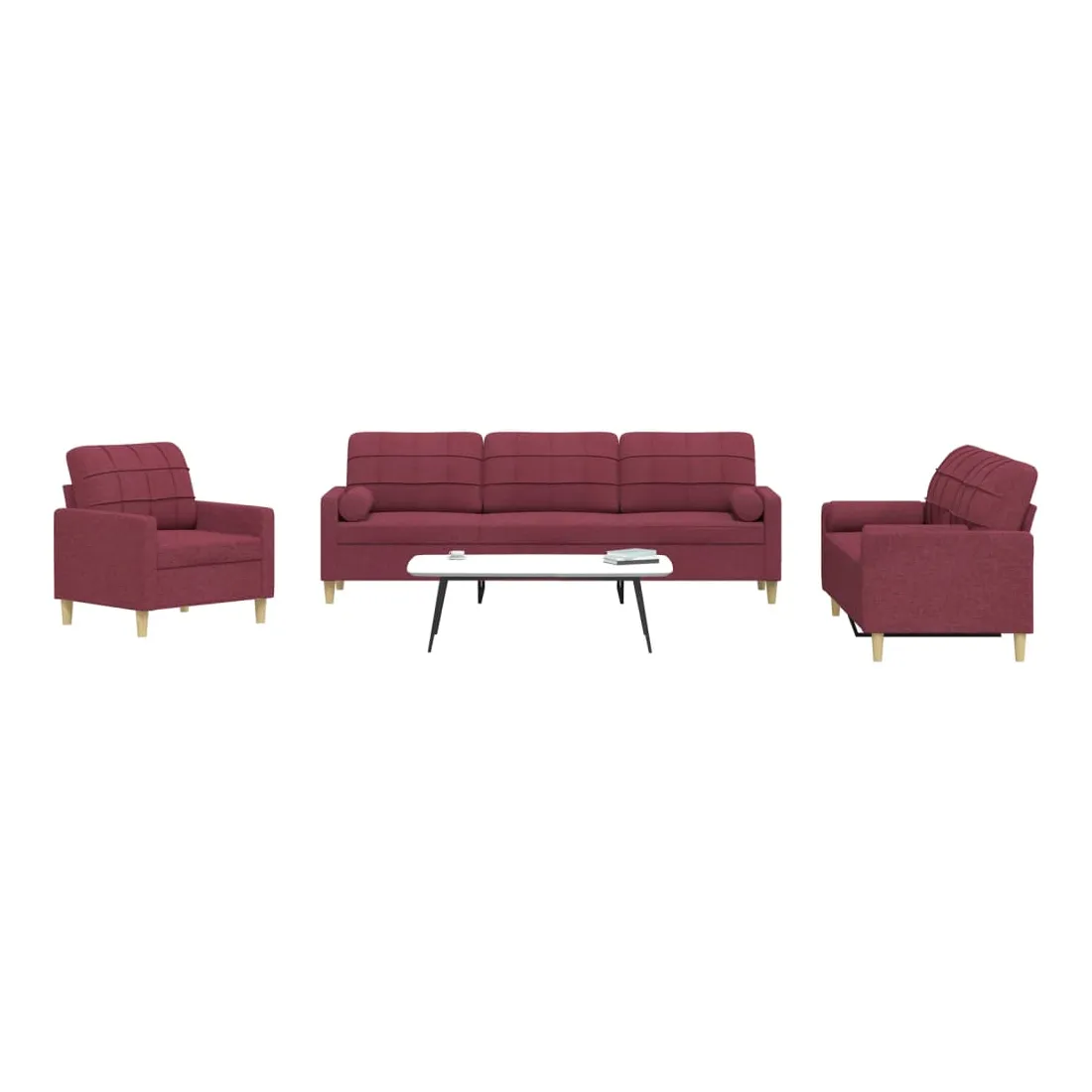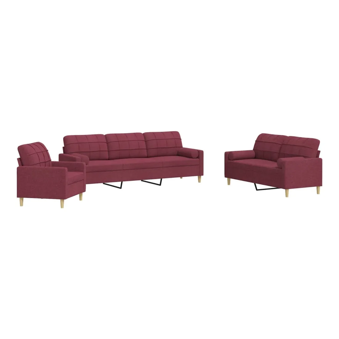 Cet ensemble de canapés est un excellent endroit pour discuter, lire, regarder la télévision ou simplement vous détendre. Il est destiné à être un point central de votre maison. Matériau doux et durable : le tissu en polyester offre une combinaison de douceur, de respirabilité et de durabilité, vous garantissant un confort et une convivialité ultimes. Cadre robuste et stable : le cadre en métal du canapé en tissu assure robustesse et stabilité. Expérience d'assise confortable : le canapé est très confortable avec les sièges, les accoudoirs et les oreillers de dossier bien rembourrés. Oreillers cylindriques pratiques : ces oreillers cylindriques non seulement embellissent votre décor, mais ils peuvent également apporter un confort supplémentaire lorsque vous êtes assis ou allongé.