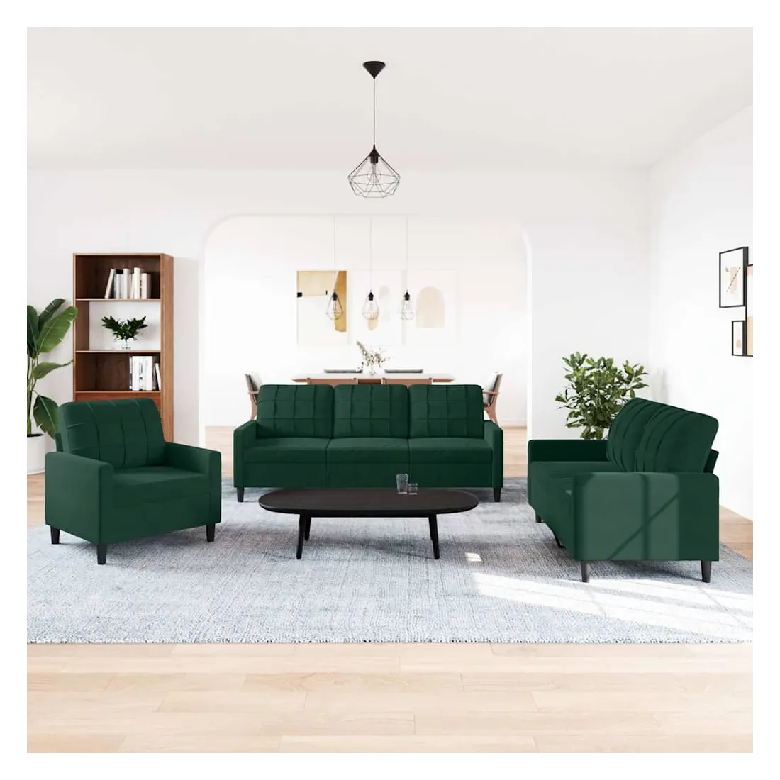 Cet ensemble de canapés est un excellent endroit pour discuter, lire, regarder la télévision ou simplement vous détendre. Il est destiné à être un point central de votre maison. Matériau doux et confortable : le tissu en velours présente une surface douce et lisse qui offre une sensation agréable contre la peau, vous apportant chaleur et confort ultime. Cadre robuste et stable : le cadre en métal du canapé de salon assure robustesse et stabilité. Expérience d'assise confortable : le canapé est très confortable avec les sièges, les accoudoirs et les oreillers de dossier bien rembourrés. Design accrocheur : doté d'un design simple mais moderne, ce canapé est destiné à attirer l'attention dans votre chambre.