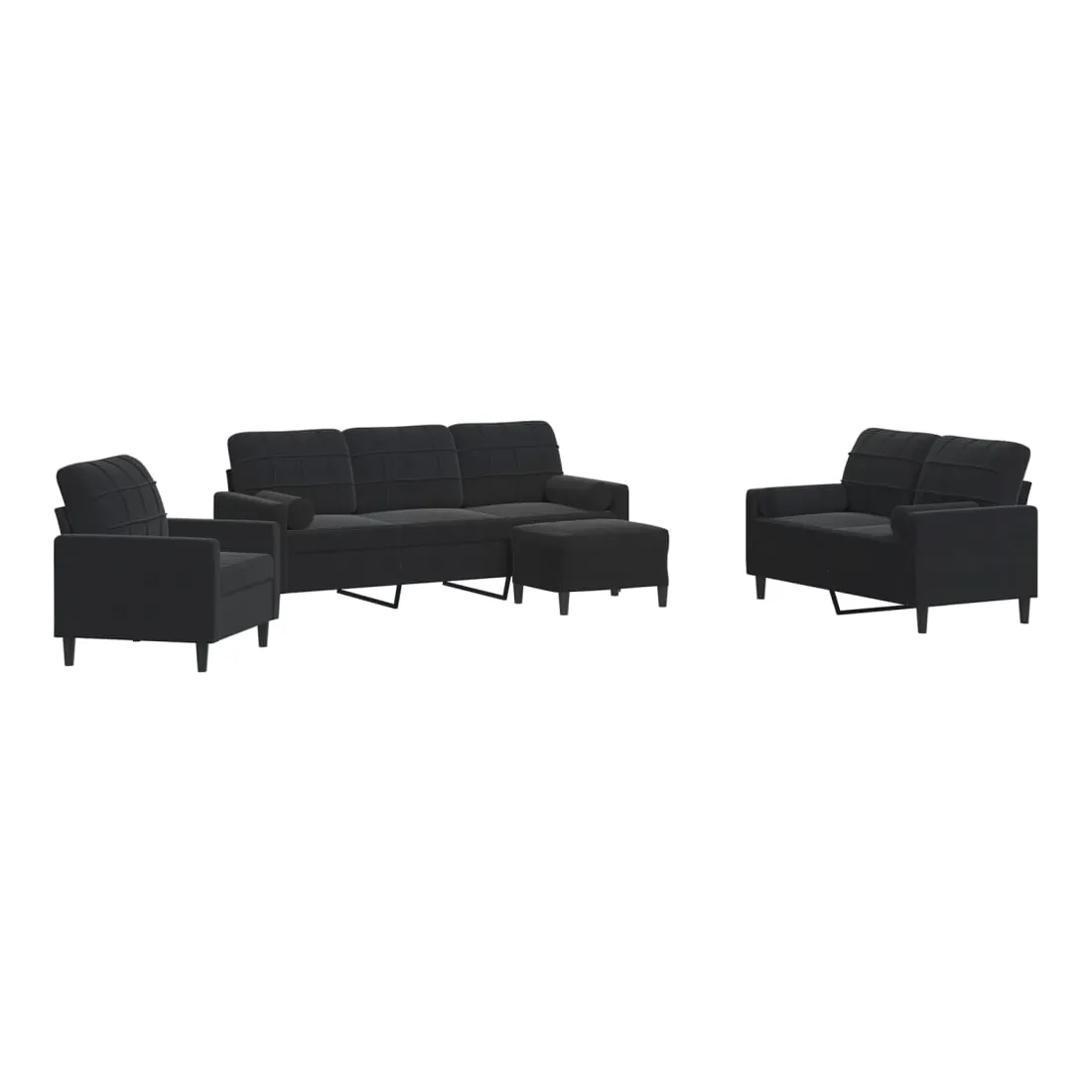 Cet ensemble de canapés est un excellent endroit pour discuter, lire, regarder la télévision ou simplement vous détendre. Il est destiné à être un point central de votre maison. Matériau doux et confortable : le tissu en velours présente une surface douce et lisse qui offre une sensation agréable contre la peau, vous apportant chaleur et confort ultime.Cadre robuste et stable : le cadre en métal du canapé de salon assure robustesse et stabilité.Expérience d'assise confortable : le canapé est très confortable avec les sièges, les accoudoirs et les oreillers de dossier bien rembourrés.Pouf polyvalent : ce repose-pied convient pour reposer vos pieds lorsque vous êtes allongé dans un canapé, ou pour vous offrir un siège supplémentaire dans votre pièce. De plus, le design simple et la taille compacte le rendent idéal pour presque tous vos espaces de vie.Design accrocheur : doté d'un design simple mais moderne, ce canapé est destiné à attirer l'attention dans votre chambre.