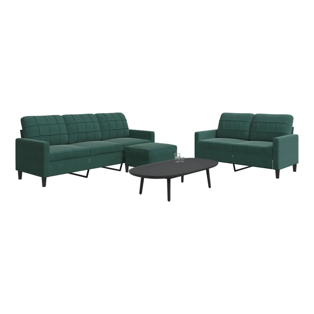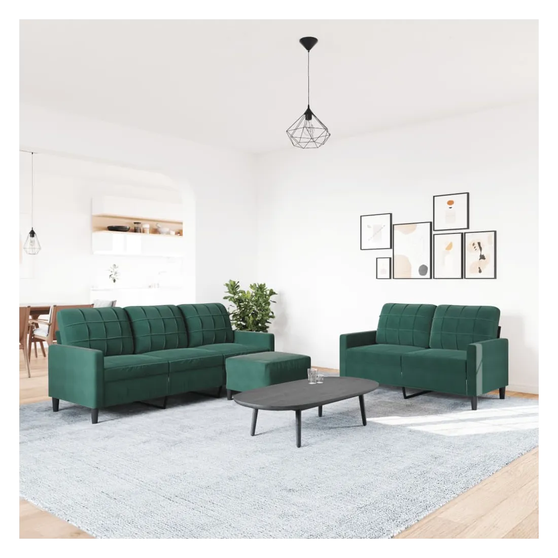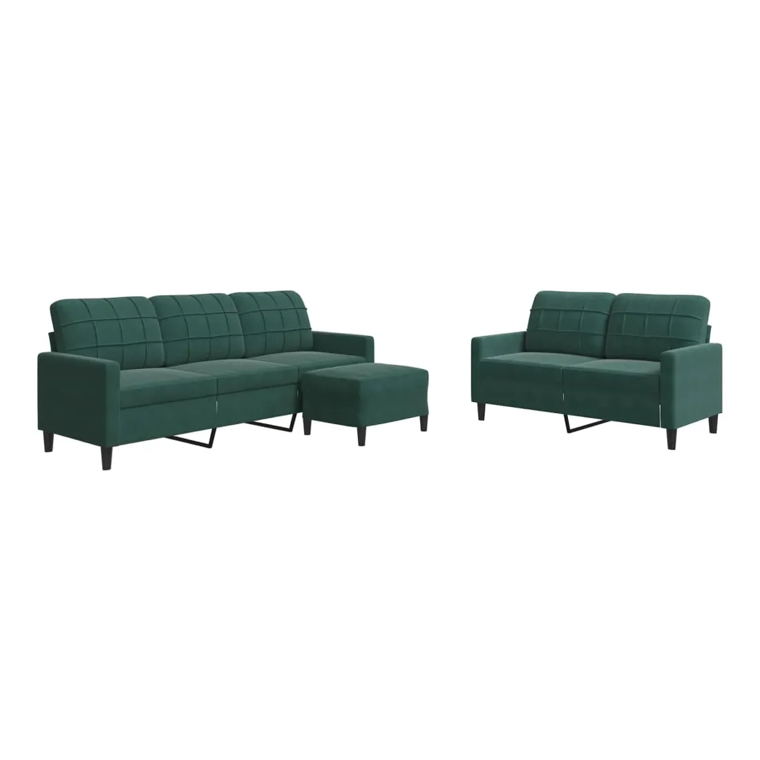Cet ensemble de canapés est un excellent endroit pour discuter, lire, regarder la télévision ou simplement vous détendre. Il est destiné à être un point central de votre maison. Matériau doux et confortable : le tissu en velours présente une surface douce et lisse qui offre une sensation agréable contre la peau, vous apportant chaleur et confort ultime.Cadre robuste et stable : le cadre en métal du canapé de salon assure robustesse et stabilité.Expérience d'assise confortable : le canapé est très confortable avec les sièges, les accoudoirs et les oreillers de dossier bien rembourrés.Pouf polyvalent : ce repose-pied convient pour reposer vos pieds lorsque vous êtes allongé dans un canapé, ou pour vous offrir un siège supplémentaire dans votre pièce. De plus, le design simple et la taille compacte le rendent idéal pour presque tous vos espaces de vie.Design accrocheur : doté d'un design simple mais moderne, ce canapé est destiné à attirer l'attention dans votre chambre.