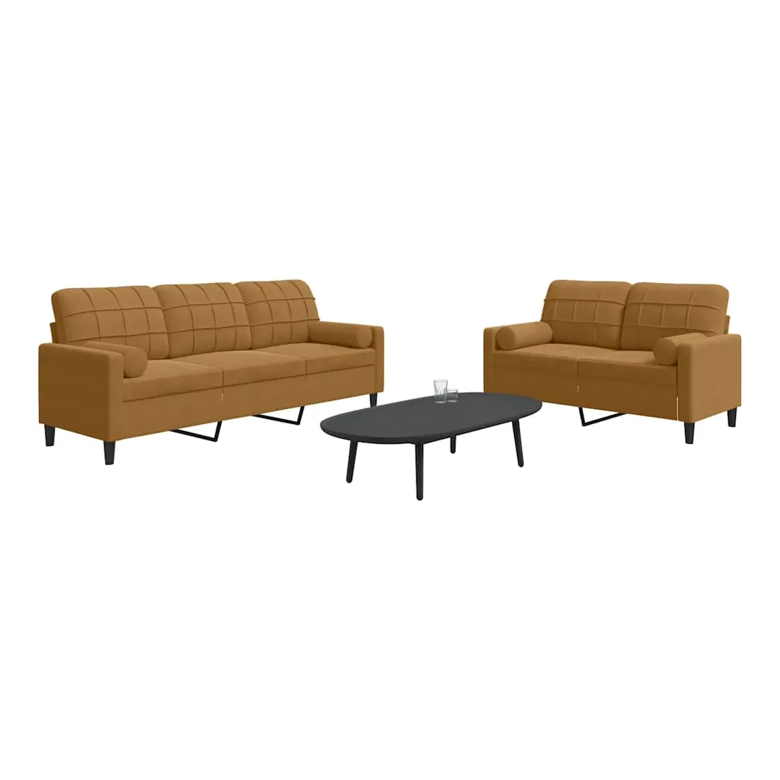 vidaXLCet ensemble de canapés est un excellent endroit pour discuter, lire, regarder la télévision ou simplement vous détendre. Il est destiné à être un point central de votre maison. Matériau doux et confortable : le tissu en velours présente une surface douce et lisse qui offre une sensation agréable contre la peau, vous apportant chaleur et confort ultime.Cadre robuste et stable : le cadre en métal du canapé de salon assure robustesse et stabilité.Expérience d'assise confortable : le canapé est très confortable avec les sièges, les accoudoirs et les oreillers de dossier bien rembourrés.Design accrocheur : doté d'un design simple mais moderne, ce canapé est destiné à attirer l'attention dans votre chambre.