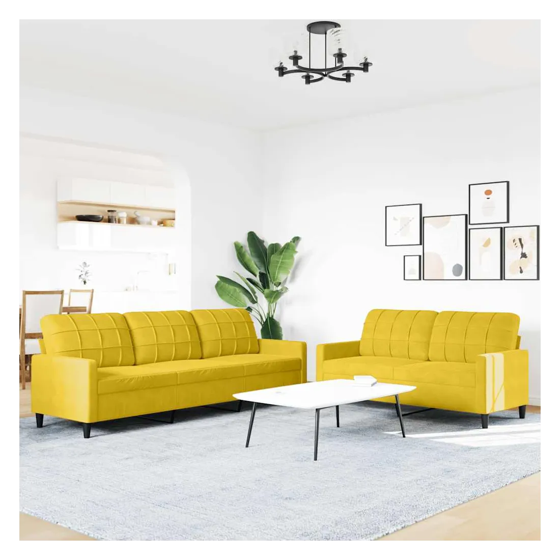 Cet ensemble de canapés est un excellent endroit pour discuter, lire, regarder la télévision ou simplement vous détendre. Il est destiné à être un point central de votre maison. Matériau doux et confortable : le tissu en velours présente une surface douce et lisse qui offre une sensation agréable contre la peau, vous apportant chaleur et confort ultime. Cadre robuste et stable : le cadre en métal du canapé de salon assure robustesse et stabilité. Expérience d'assise confortable : le canapé est très confortable avec les sièges, les accoudoirs et les oreillers de dossier bien rembourrés. Design accrocheur : doté d'un design simple mais moderne, ce canapé est destiné à attirer l'attention dans votre chambre.