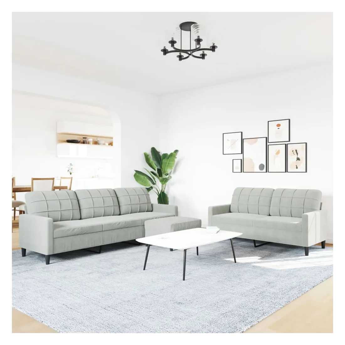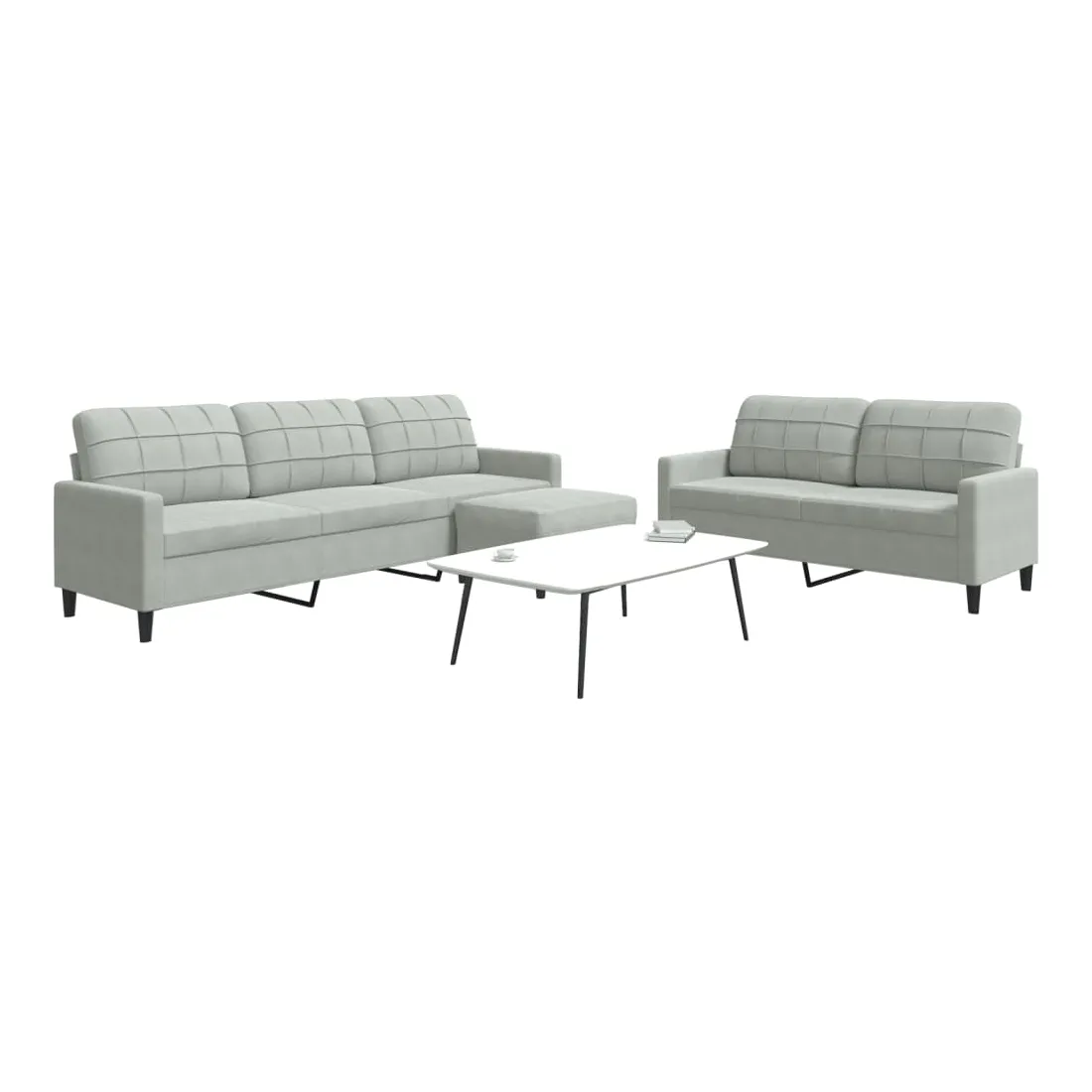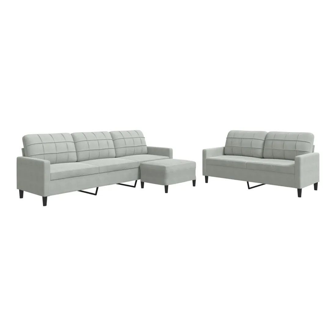 Cet ensemble de canapés est un excellent endroit pour discuter, lire, regarder la télévision ou simplement vous détendre. Il est destiné à être un point central de votre maison. Matériau doux et confortable : le tissu en velours présente une surface douce et lisse qui offre une sensation agréable contre la peau, vous apportant chaleur et confort ultime. Cadre robuste et stable : le cadre en métal du canapé de salon assure robustesse et stabilité. Expérience d'assise confortable : le canapé est très confortable avec les sièges, les accoudoirs et les oreillers de dossier bien rembourrés. Pouf polyvalent : ce repose-pied convient pour reposer vos pieds lorsque vous êtes allongé dans un canapé, ou pour vous offrir un siège supplémentaire dans votre pièce. De plus, le design simple et la taille compacte le rendent idéal pour presque tous vos espaces de vie.Design accrocheur : doté d'un design simple mais moderne, ce canapé est destiné à attirer l'attention dans votre chambre.