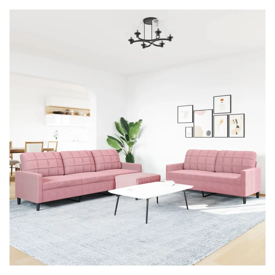 Cet ensemble de canapés est un excellent endroit pour discuter, lire, regarder la télévision ou simplement vous détendre. Il est destiné à être un point central de votre maison. Matériau doux et confortable : le tissu en velours présente une surface douce et lisse qui offre une sensation agréable contre la peau, vous apportant chaleur et confort ultime. Cadre robuste et stable : le cadre en métal du canapé de salon assure robustesse et stabilité. Expérience d'assise confortable : le canapé est très confortable avec les sièges, les accoudoirs et les oreillers de dossier bien rembourrés. Pouf polyvalent : ce repose-pied convient pour reposer vos pieds lorsque vous êtes allongé dans un canapé, ou pour vous offrir un siège supplémentaire dans votre pièce. De plus, le design simple et la taille compacte le rendent idéal pour presque tous vos espaces de vie.Design accrocheur : doté d'un design simple mais moderne, ce canapé est destiné à attirer l'attention dans votre chambre.