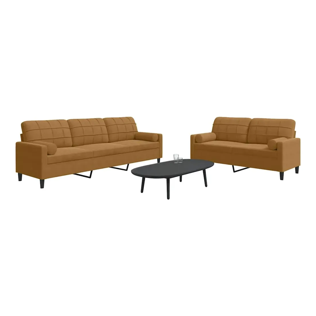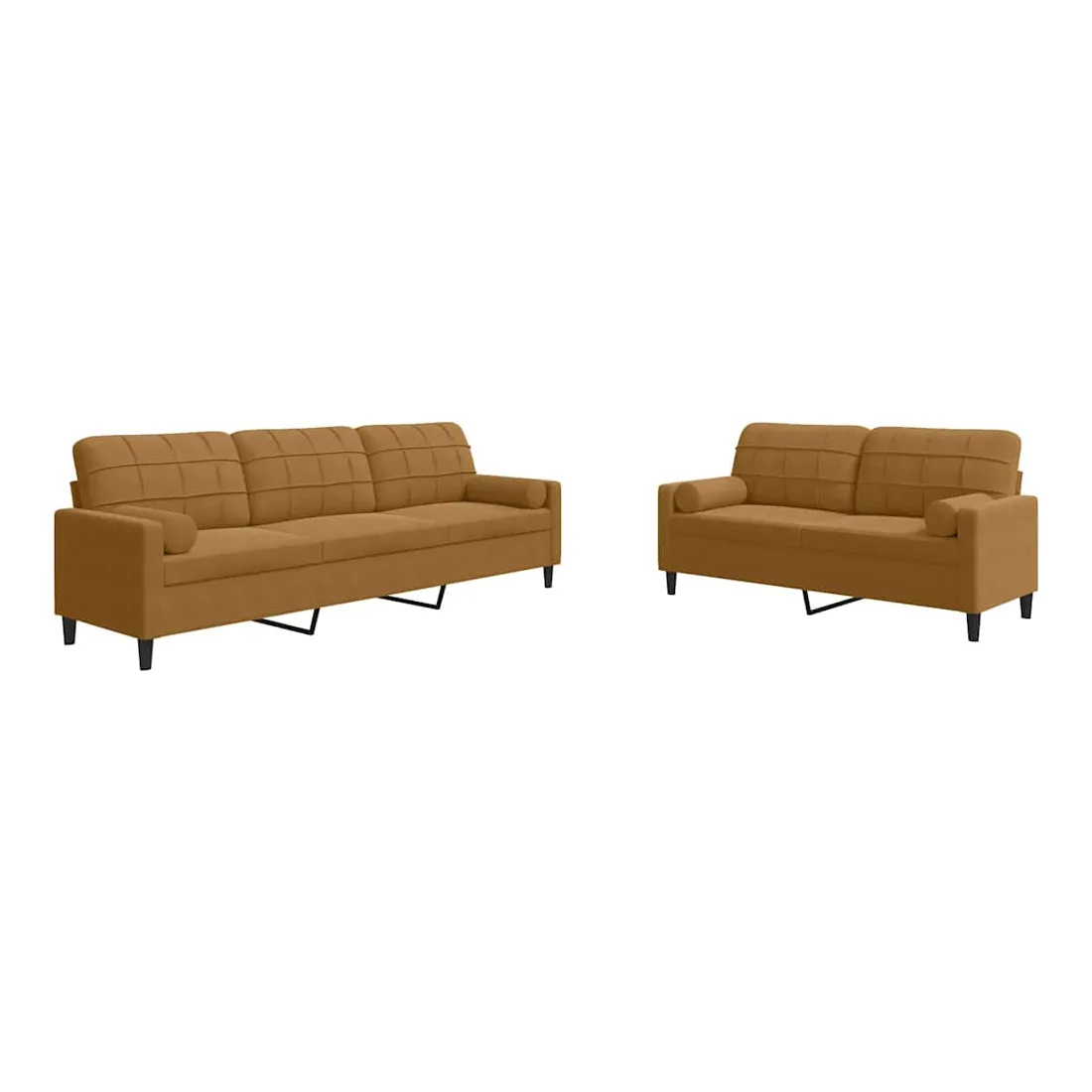 vidaXLCet ensemble de canapés est un excellent endroit pour discuter, lire, regarder la télévision ou simplement vous détendre. Il est destiné à être un point central de votre maison. Matériau doux et confortable : le tissu en velours présente une surface douce et lisse qui offre une sensation agréable contre la peau, vous apportant chaleur et confort ultime. Cadre robuste et stable : le cadre en métal du canapé de salon assure robustesse et stabilité. Expérience d'assise confortable : le canapé est très confortable avec les sièges, les accoudoirs et les oreillers de dossier bien rembourrés. Les traversins inclus ne font pas qu'embellir votre décor, ils peuvent aussi ajouter un confort supplémentaire lorsque vous êtes assis ou allongé. Design accrocheur : doté d'un design simple mais moderne, ce canapé est destiné à attirer l'attention dans votre chambre.