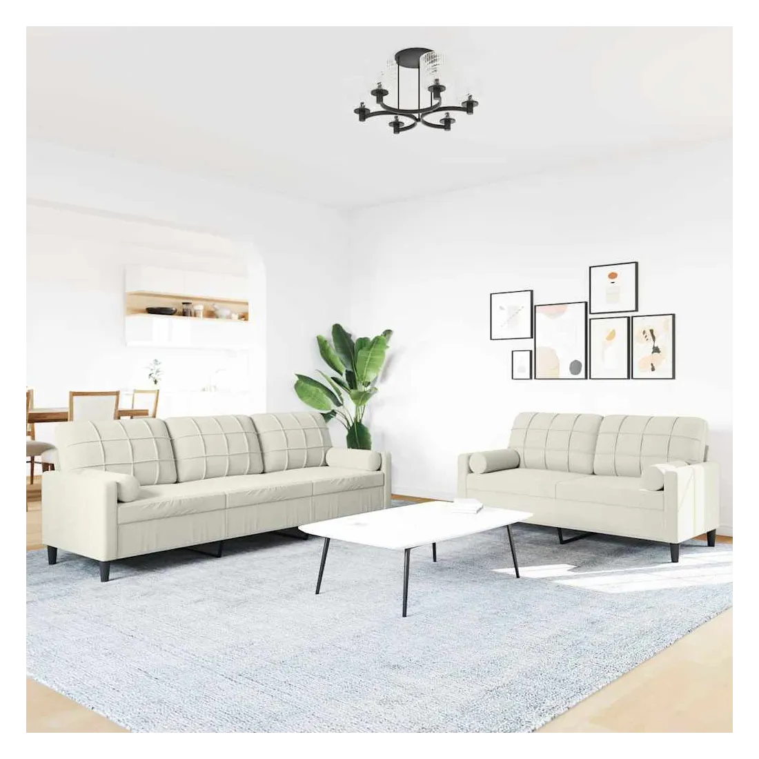 vidaXLCet ensemble de canapés est un excellent endroit pour discuter, lire, regarder la télévision ou simplement vous détendre. Il est destiné à être un point central de votre maison. Matériau doux et confortable : le tissu en velours présente une surface douce et lisse qui offre une sensation agréable contre la peau, vous apportant chaleur et confort ultime. Cadre robuste et stable : le cadre en métal du canapé de salon assure robustesse et stabilité. Expérience d'assise confortable : le canapé est très confortable avec les sièges, les accoudoirs et les oreillers de dossier bien rembourrés. Les traversins inclus ne font pas qu'embellir votre décor, ils peuvent aussi ajouter un confort supplémentaire lorsque vous êtes assis ou allongé. Design accrocheur : doté d'un design simple mais moderne, ce canapé est destiné à attirer l'attention dans votre chambre.