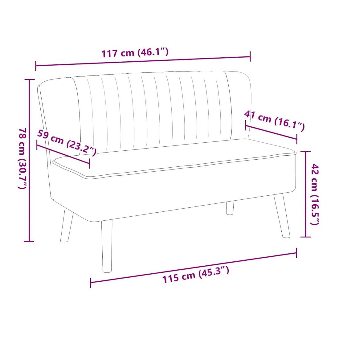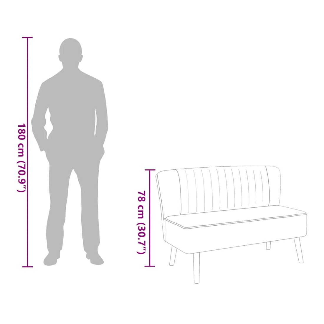 Ce canapé à 2 places sera un excellent ajout à votre intérieur et va embellir votre vie quotidienne. Doté d'un design concis mais moderne, le fauteuil s'accordera parfaitement avec tout décor de salon. Le canapé dispose d'un rembourrage en tissu résistant et d'un cadre en bois de haute qualité, ce qui contribuent à sa solidité et sa durabilité. Le coussin de siège rembourré ajoute plus de confort. Le canapé est un choix parfait pour discuter, lire, regarder la télévision ou tout simplement pour vous détendre. L'assemblage est facile.