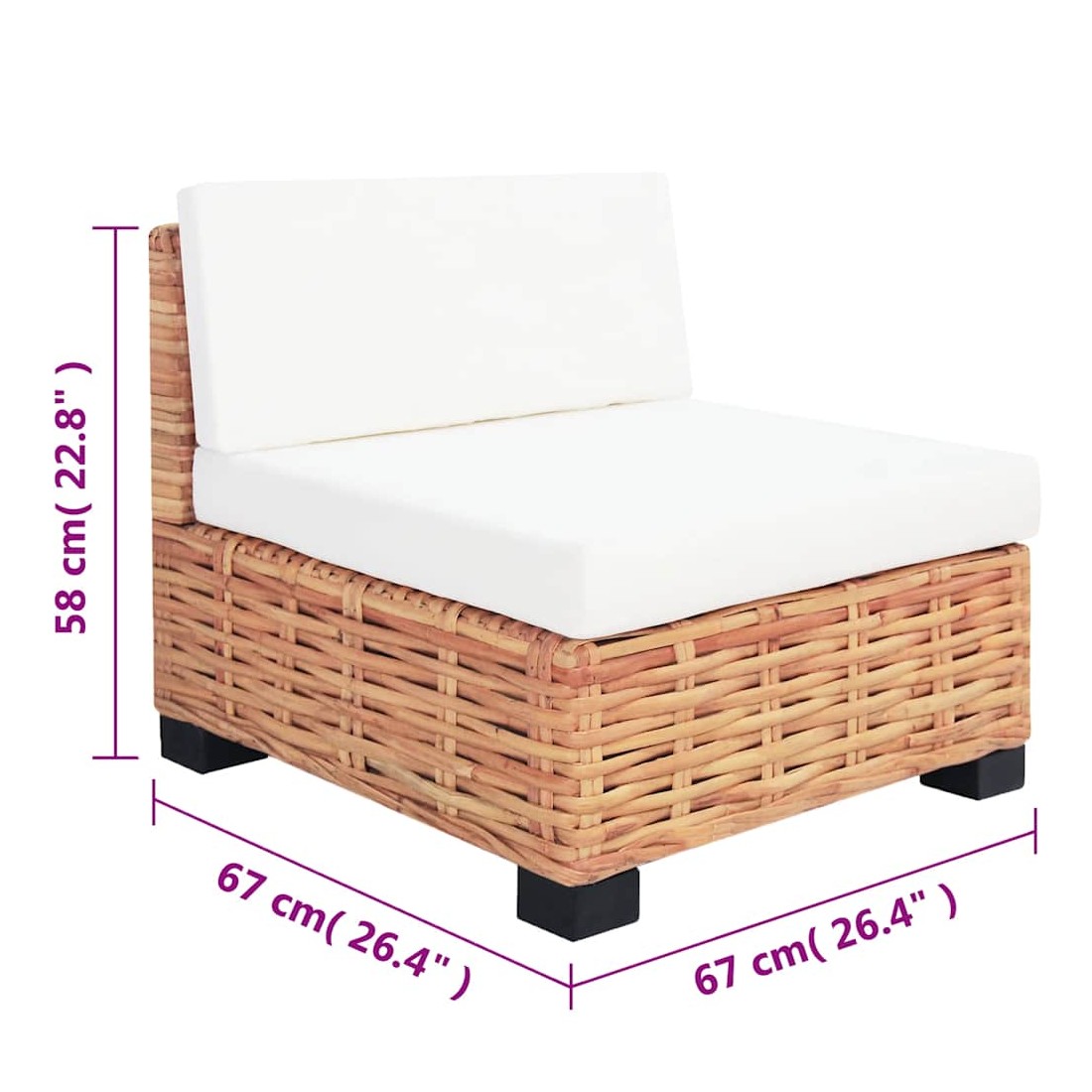 • Dimensions du canapé central : 67 x 67 x 58 cm (I x P x H)