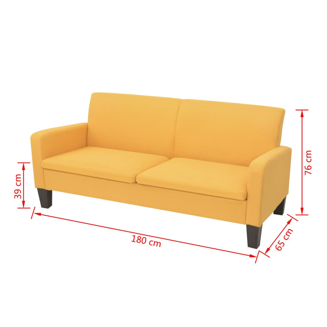 - Hauteur du siège depuis le sol (avec coussins) : 39 cm