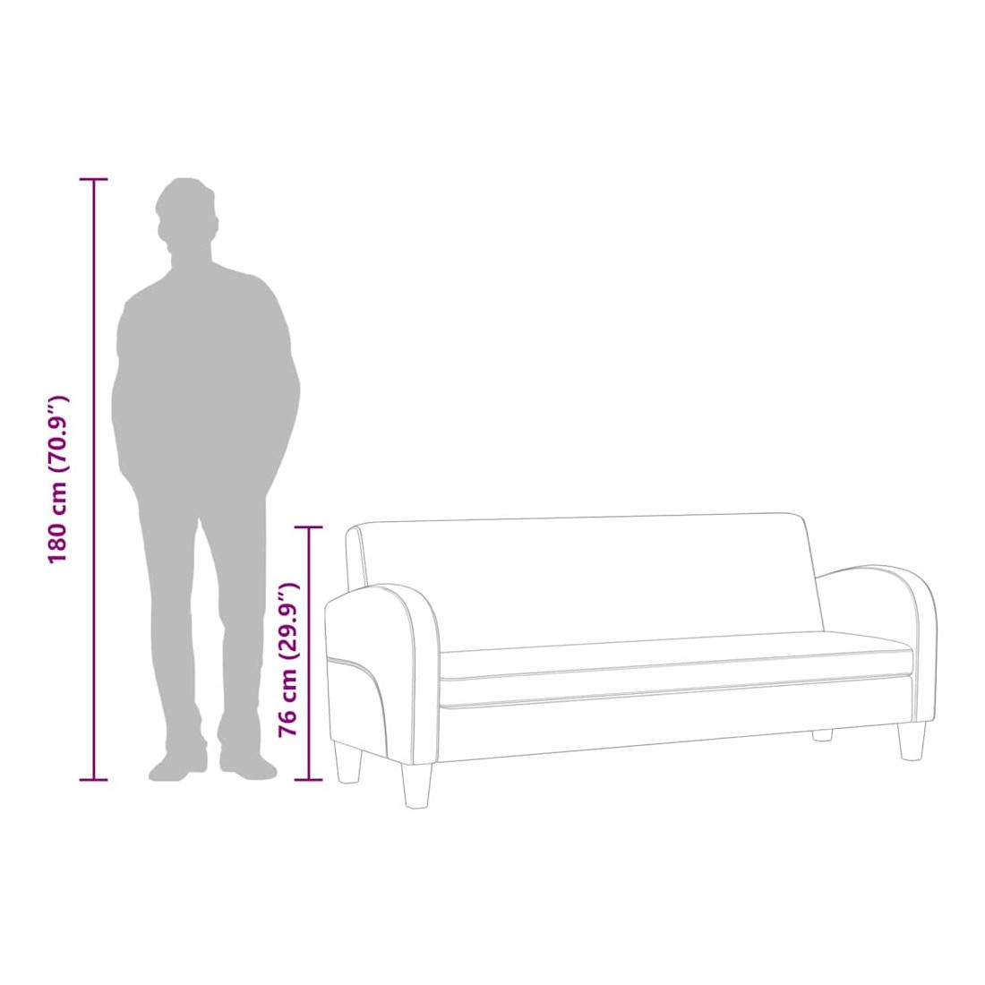 Notre confortable canapé à 3 places en cuir synthétique a un design classique et élégant et sera un excellent supplément à tout intérieur. Le canapé est recouvert de cuir synthétique de haute qualité et est rembourré de mousse extra épaisse pour plus de confort. Le cadre en bois massif rend le canapé robuste et durable. L'assemblage est facile.
