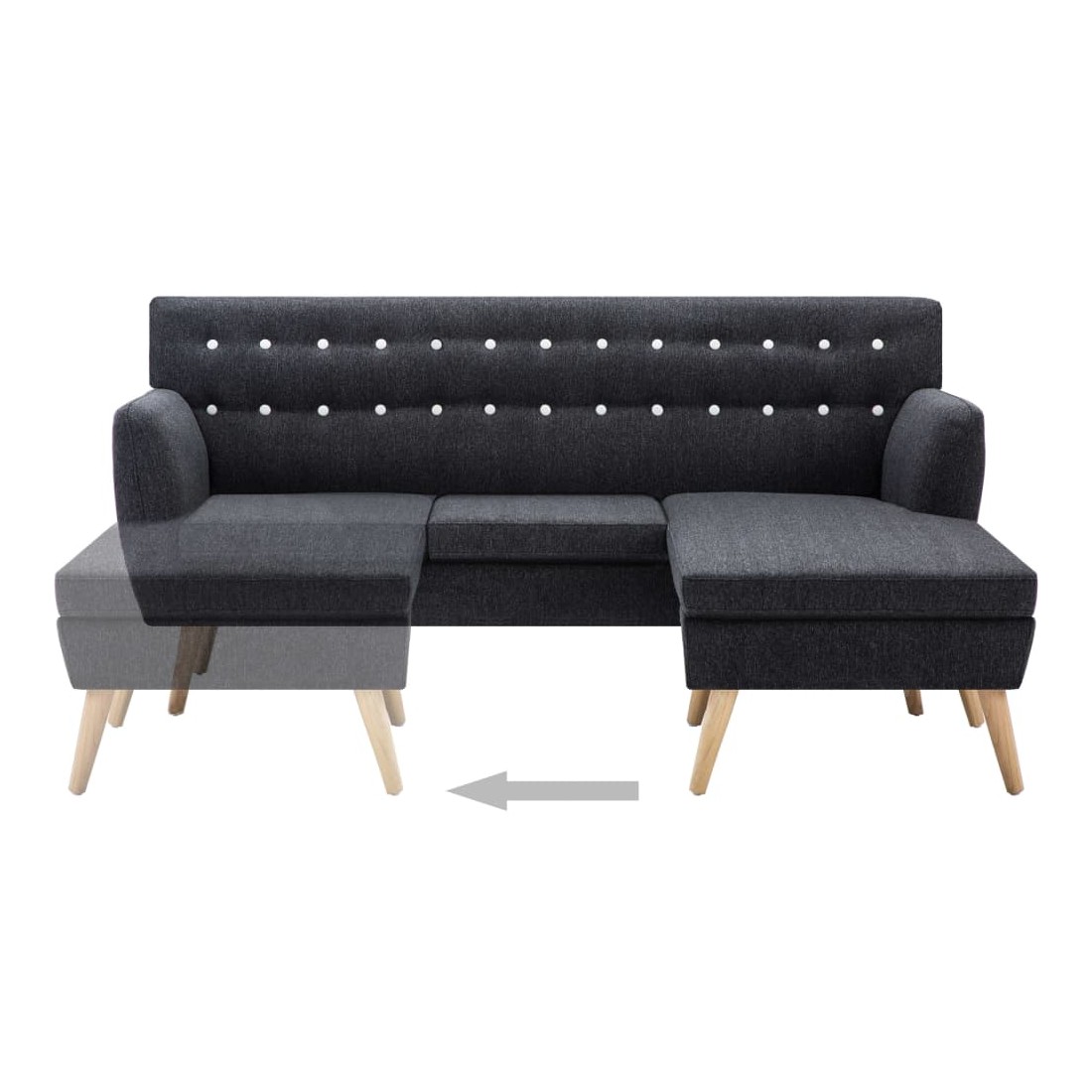 Profitez de votre temps de détente sur ce canapé d'angle de haute qualité ! Le canapé recouvert de tissu possède un design moderne qui se mariera parfaitement avec tout intérieur de maison ou de bureau. Cadre robuste et stable : avec un cadre en bois et en MDF résistant, le canapé est robuste, stable et durable.Expérience d'assise confortable : recouvert de tissu de polyester de haute qualité et rembourré de mousse épaisse, ce canapé assure également un confort optimal en position assise et allongée.Nombreuses applications : la méridienne peut être placée de n'importe quel côté du canapé pour être sûr qu'elle se mariera parfaitement avec votre décoration intérieure.