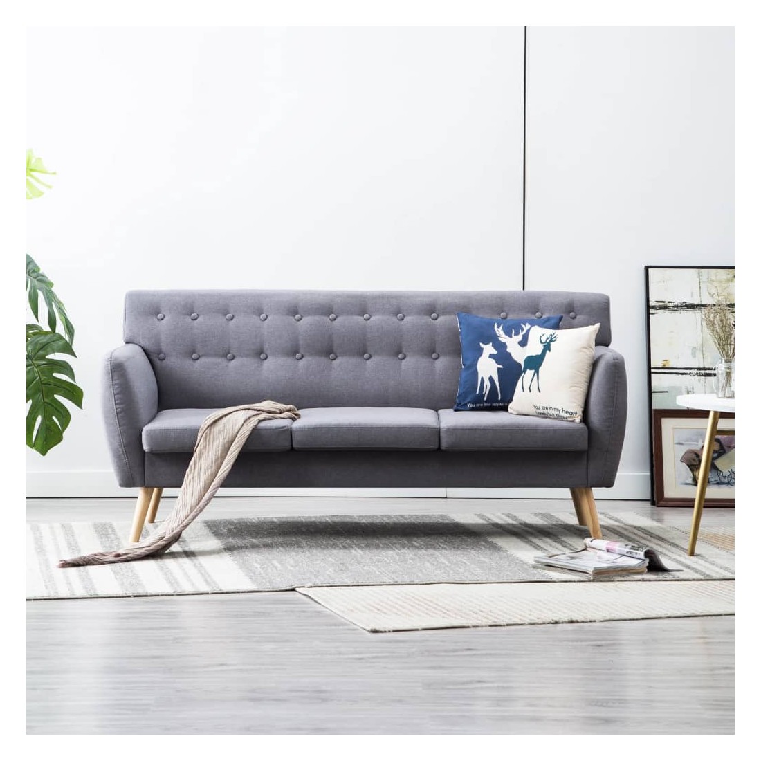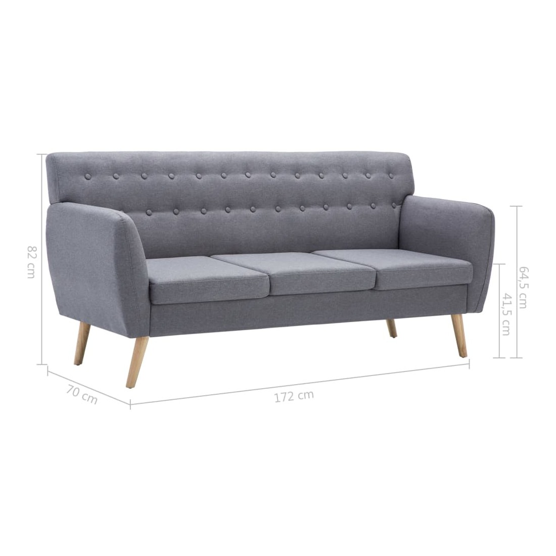 Notre canapé à 3 places, avec un design simple mais élégant, sera un excellent supplément à la décoration de votre maison ou bureau ! Le canapé offre non seulement une assise confortable, mais également une esthétique agréable grâce au revêtement en tissu épaissement rembourré. Doux et durable : le tissu présente un aspect simple et épuré tout en restant respirant et durable.Cadre robuste et stable : le canapé a un cadre en MDF résistant qui le rend très stable et durable. Les pieds en caoutchouc contribuent à la stabilité du canapé.Expérience d'assise confortable : le revêtement en tissu rembourré de mousse contribue au confort d'assise ultime du canapé.