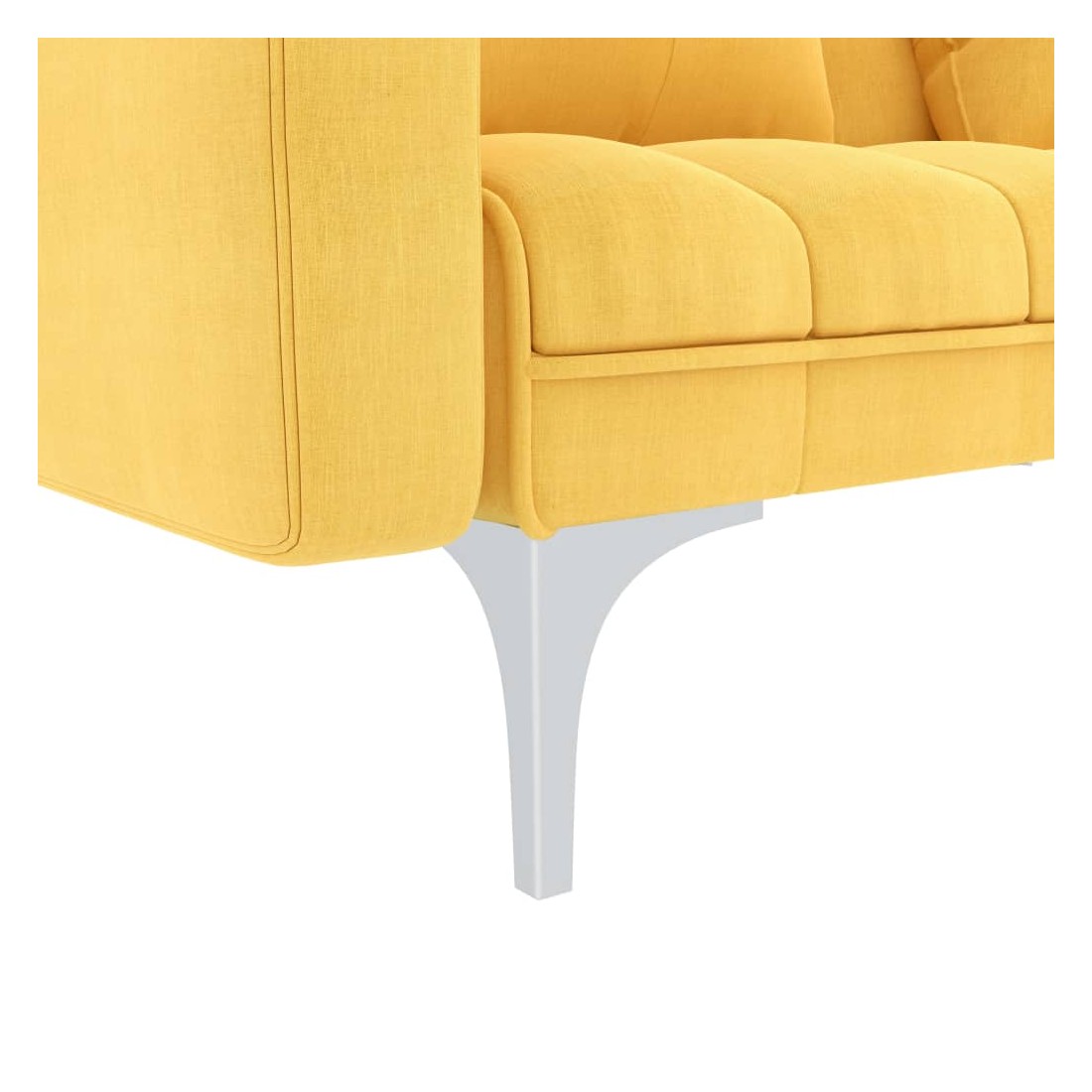- Matériau : cadre en bois + revêtement en tissu + pieds en métal