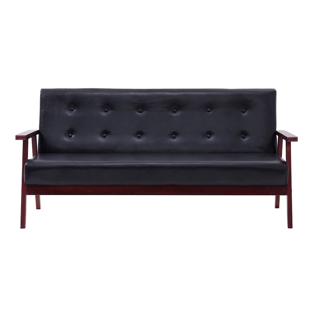 Ce canapé, avec son design cool et rétro, sera le point de convergence de votre salon ou votre endroit préféré. Il est idéal pour lire ou vous y détendre. Longue durée de vie et entretien facile : le similicuir est un matériau très durable qui résiste aux taches, ce qui le rend facile à nettoyer avec un chiffon humide. Sa surface lisse lui confère un aspect élégant qui ressemble à celui du cuir véritable.Cadre robuste et stable : le cadre en bois du canapé assure robustesse et stabilité.Expérience d'assise confortable : le canapé dispose d'un large coin salon et de coussins épais pour un confort d'assise ultime.