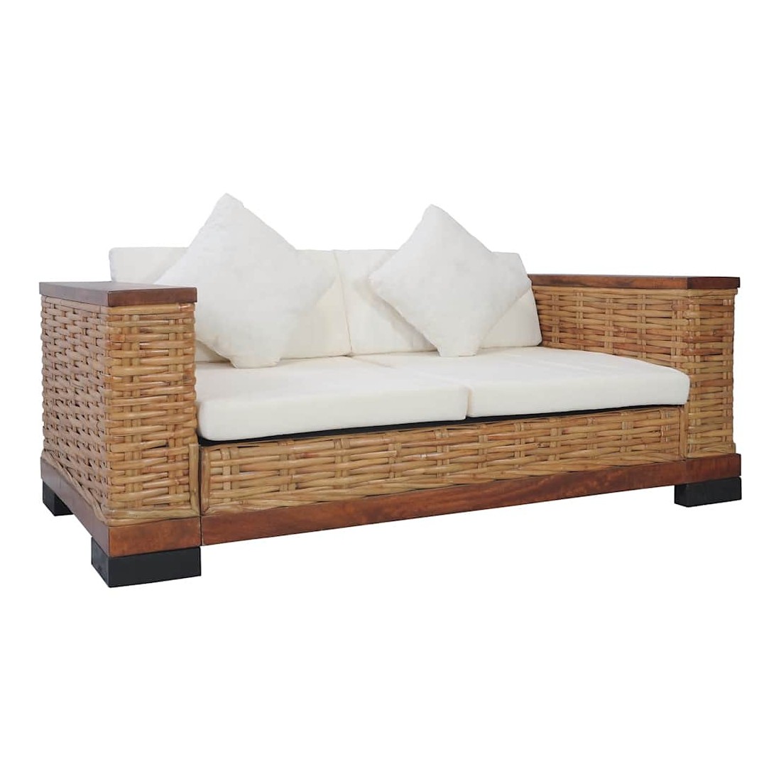 Ensemble de canapés 2 pcs avec coussins marron rotin naturel