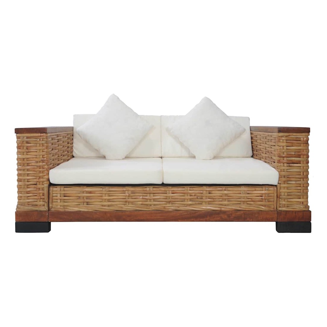 Ensemble de canapés 2 pcs avec coussins Marron Rotin naturel