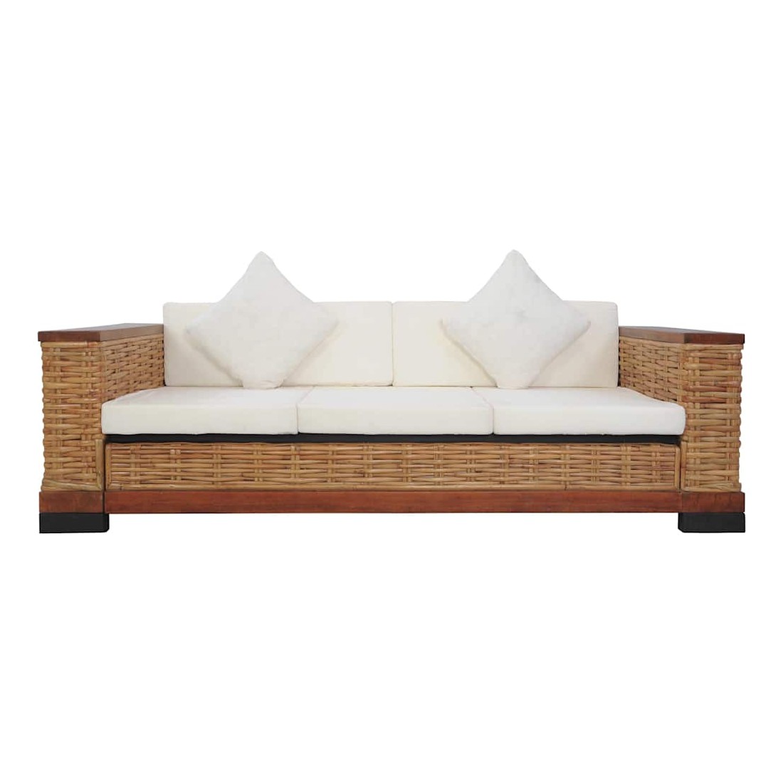 Cet ensemble de canapés en rotin associe style et fonctionnalité et sera un excellent ajout à votre maison. Grâce au matériau de rotin véritable, l'ensemble est facile à nettoyer, résistant à l'usure et adapté à une utilisation quotidienne. Il dispose d'un cadre en bois robuste, très durable et stable. Les coussins épais de dossier et de siège sont considérablement confortables et également lavables grâce à leurs housses amovibles. En outre, les accoudoirs larges s'ajoutent au confort de votre assise. La livraison inclut un canapé à 2 places, un canapé à 3 places, 5 coussins de siège, 4 coussins de dossier et 4 oreillers.