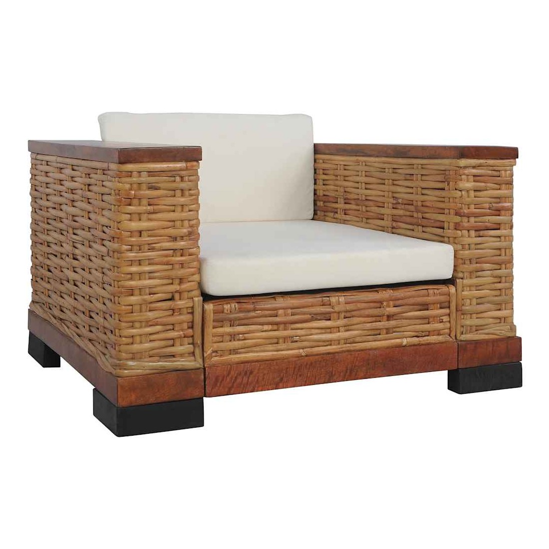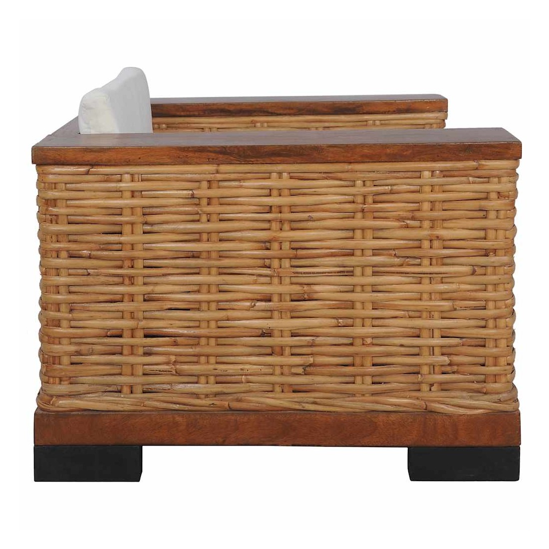 - Matériau : rotin naturel + cadre en bois de manguier massif + revêtement en tissu