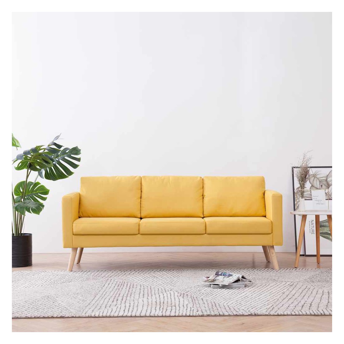 Cet élégant canapé à 3 places ajoutera une touche d'élégance à votre espace de vie. Que vous ayez besoin d'un canapé confortable à mettre dans votre bureau, ou que vous souhaitiez simplement ajouter une touche d'élégance à votre décoration intérieure, ce canapé en tissu sera un excellent choix ! Le canapé dispose d'un large espace d'assise et de coussins épaississement rembourrés pour un confort d'assise optimal. Il est tapissé d'un tissu doux et résistant à l'usure. Les housses de coussin sont faciles à nettoyer car elles sont amovibles et lavables en machine. De plus, le cadre en bois contribue à la construction robuste. La livraison comprend 1 canapé à 3 places, 3 coussins de dossier et 3 coussins de siège.
