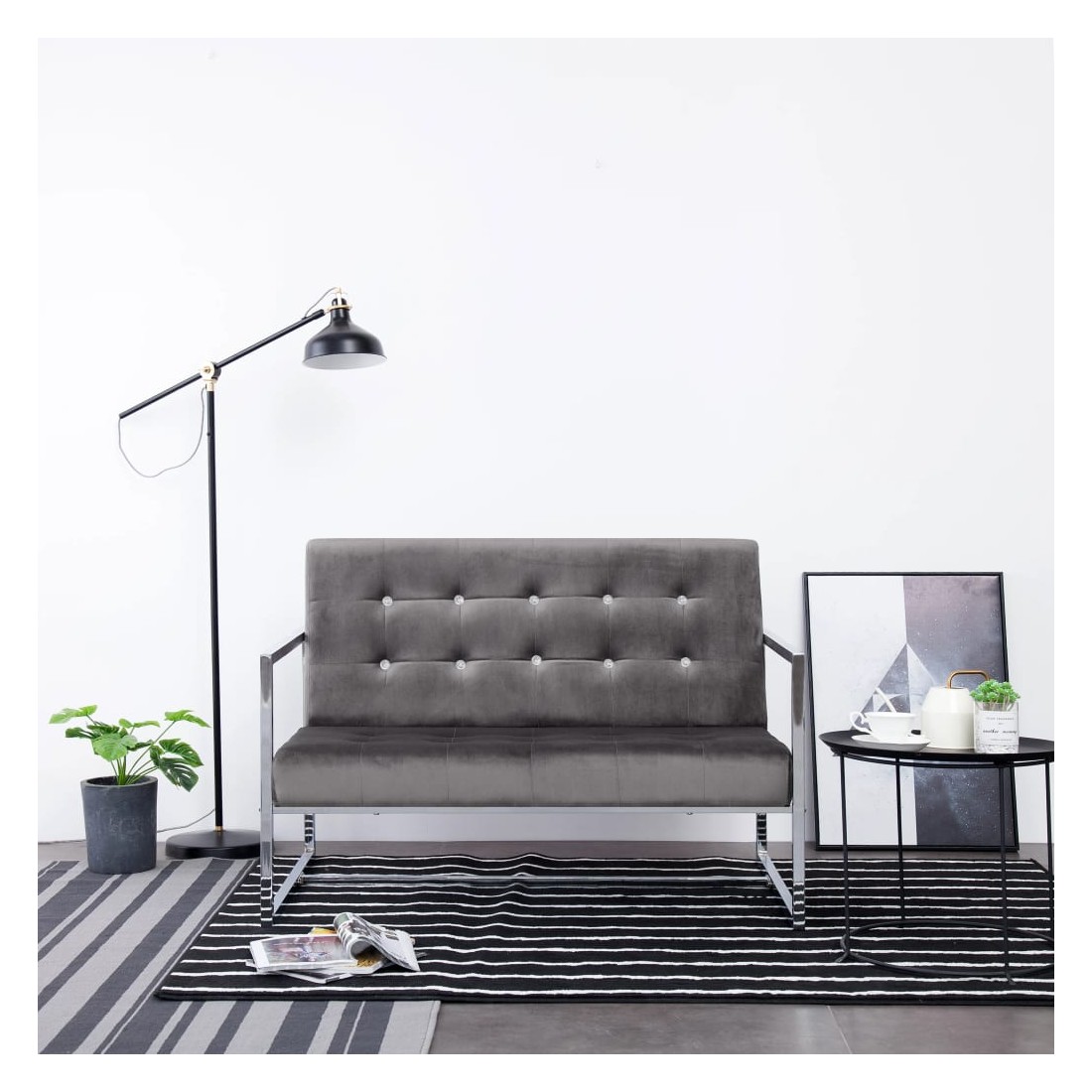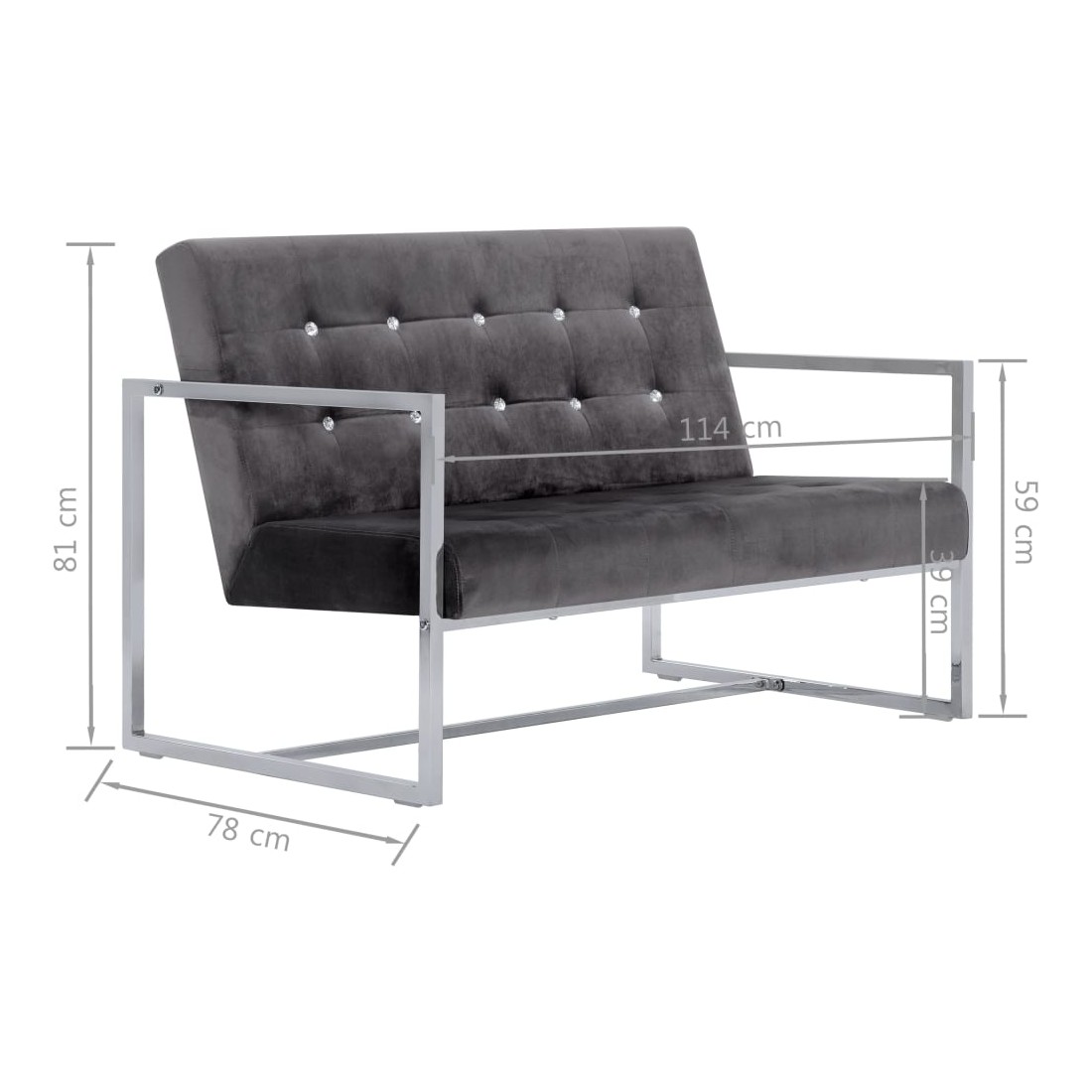 Ce canapé à 2 places sera un endroit idéal pour bavarder, lire, regarder la télévision ou simplement vous détendre. Matériau durable : grâce à son cadre en bois massif et à ses pieds chromés de haute qualité, le banc est très stable et durable. Expérience d’assise confortable : la causeuse est recouverte de velours résistant et rembourrée de mousse souple pour plus de confort. Design élégant : doté d'un design à la fois concis et moderne, le fauteuil s'intégrera parfaitement dans n'importe quel salon.