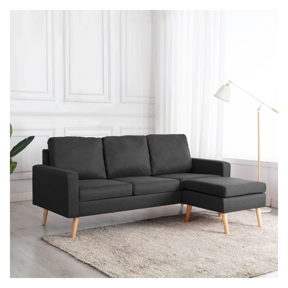 Ce canapé à 3 places avec repose-pied est conçu pour une expérience d'assise incroyable et répond parfaitement à vos besoins. Ce canapé est rembourré en tissu doux au toucher et dispose de coussins bien rembourrés, offrant un espace confortable pour vous détendre. Le cadre en bois assure le support et la stabilité de toute la construction. Vous pouvez placer le repose-pied n'importe où, selon votre confort et votre détente.
