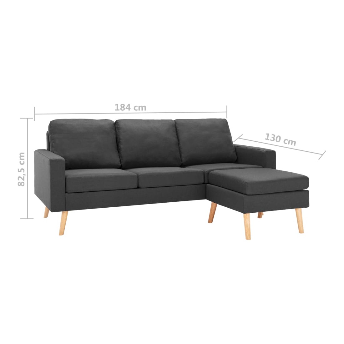 - Dimensions du canapé à 3 places : 184 x 76 x 82,5 cm (l x P x H)