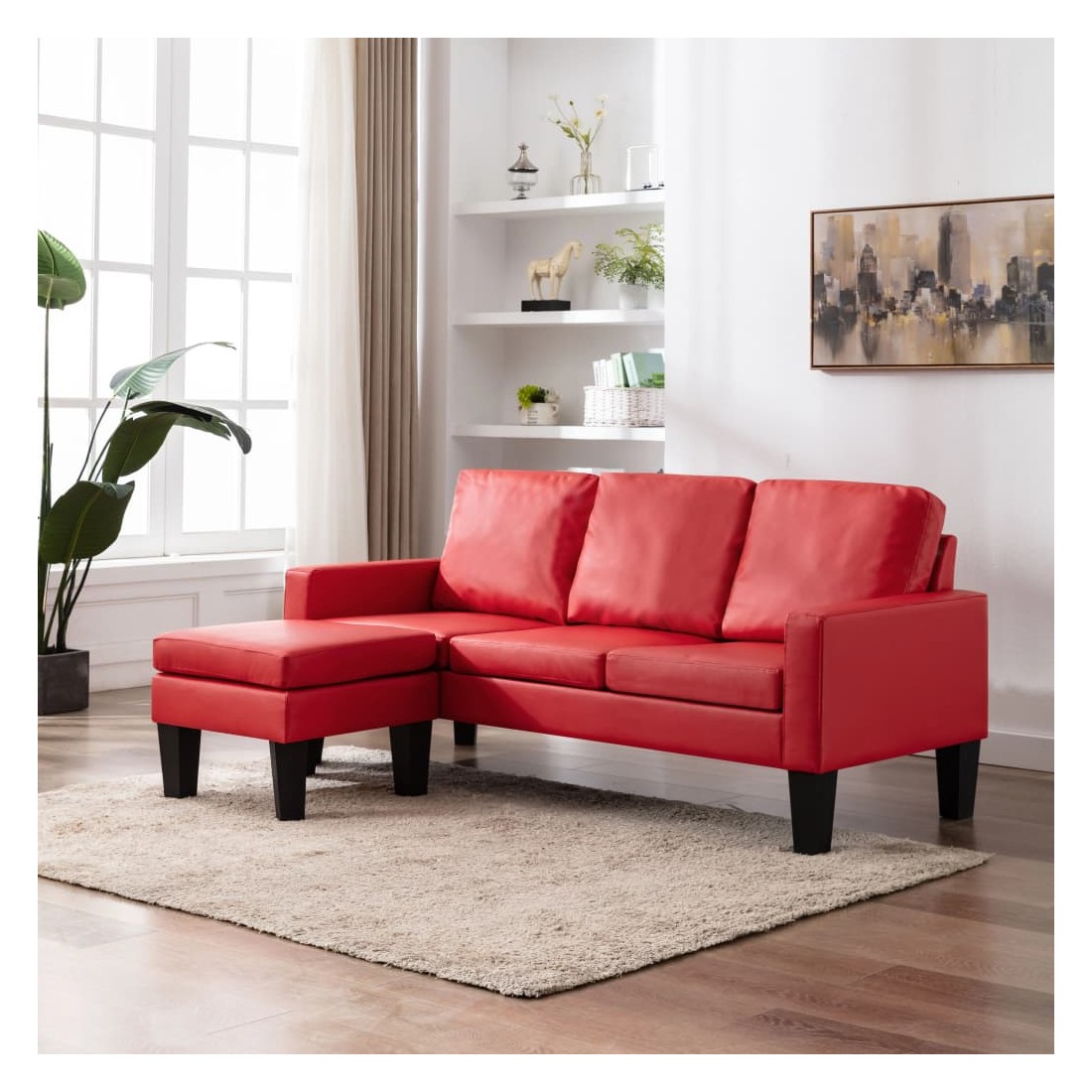 Canapé à 3 places avec repose-pied Rouge Similicuir