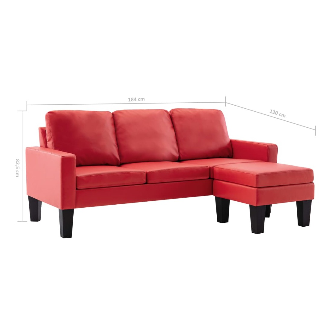 - Dimensions du canapé à 3 places : 184 x 76 x 82,5 cm (l x P x H)