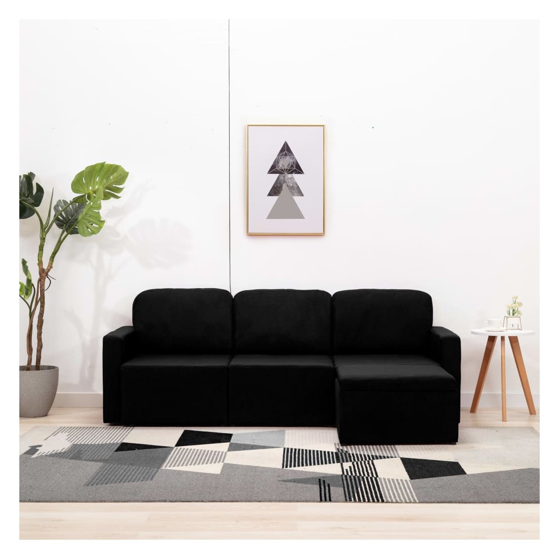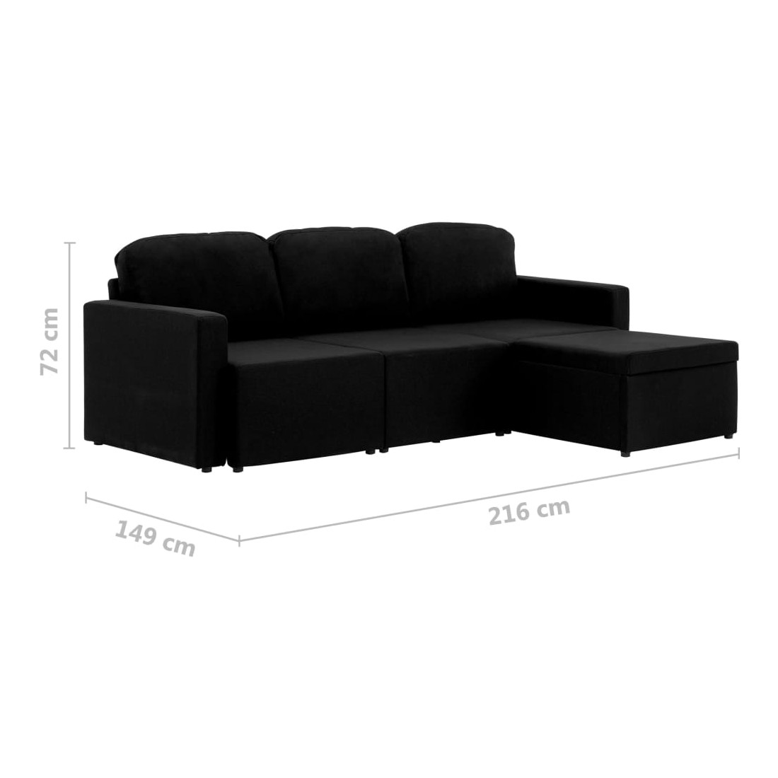Canapé-lit modulaire 3 places Noir Tissu