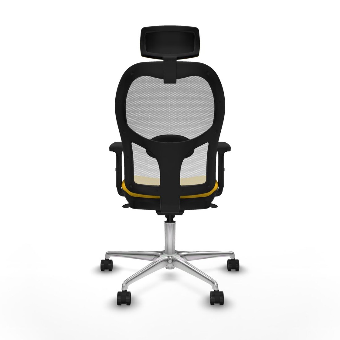 Piqueras y CrespoDer Bürostuhl mit Kopfstütze 2D086N2 von Piqueras y Crespo, Modell Jorquera, ist eine Lösung, die Komfort und Ergonomie für intensive Arbeitsumgebungen bietet. Er ist für den 24-Stunden-Dauereinsatz konzipiert und somit ideal für Büros, Homeoffice und Geschäftsräume. Dieser Bürostuhl in Gelb besticht durch sein Verstell-System, das eine 2D-Kopfstütze für optimalen Nackenhalt und eine 1D-Lendenstütze für eine gesunde Haltung über lange Arbeitszeiten umfasst. Die Rückenlehne ist fest und sorgt für Stabilität und angemessenen Halt, während die 2D-Armlehnen höhenverstellbar sind, um den Komfort zu erhöhen und Schulterverspannungen zu reduzieren. Der Stuhl verfügt über einen Synchronmechanismus mit fünf Positionen, der die Neigung von Rückenlehne und Sitz anpasst und so die ergonomisch beste Position je nach Aufgabe ermöglicht. Der Sitz ist hoch atmungsaktiv dank Mesh- und Stoffbezug, der Haltbarkeit und Frische vereint. Die 50 mm dicke, 50 kg/m³ dichte Polyurethanschaumfüllung garantiert einen bequemen und widerstandsfähigen Sitzkomfort. Die Konstruktion umfasst eine stabile, polierte Aluminium-Fünfsternbasis mit einem Durchmesser von 720 mm sowie einen verchromten Gaslift zur Höhenverstellung von 48 cm bis 61 cm, bei einer Gesamthöhe von 121 bis 134 cm. Die 65 mm Nylonrollen mit Stahlachse und -bolzen sorgen für leises und leichtes Rollen auf allen Böden. Der Stuhl trägt ein Maximalgewicht von 120 kg und bietet damit Robustheit und Zuverlässigkeit. Sein Design verbindet moderne Optik mit Funktionalität und passt sich dank komfortabler, wirtschaftlicher und praktischer Bauweise ideal an Arbeitsplätze an, um die Leistung bei langen Einsätzen zu fördern. Zusammengefasst ist der Jorquera-Stuhl von Piqueras y Crespo eine umfassende technische Lösung für alle, die einen verstellbaren, ergonomischen und atmungsaktiven Bürostuhl für anspruchsvolle professionelle Anforderungen suchen.
