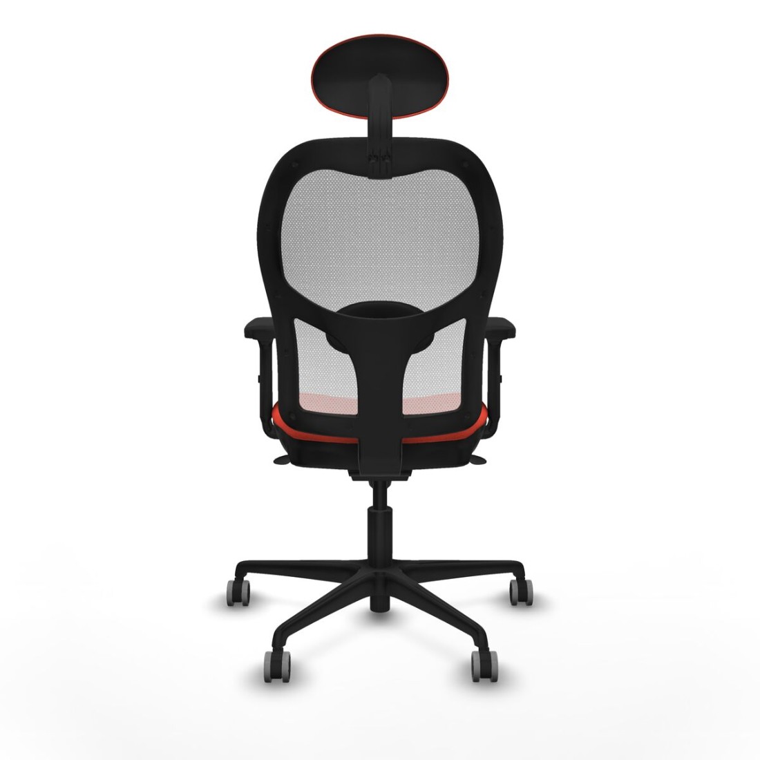 Piqueras y CrespoDer Bürostuhl mit Kopfstütze Modell 2D036G1 von Piqueras y Crespo ist eine ergonomische Lösung, die Komfort und Unterstützung während langer Arbeitstage bietet, mit einer maximalen Tragfähigkeit von 120 kg. Dieser Stuhl zeichnet sich durch seine höhenverstellbare und regulierbare Funktion aus, die eine perfekte Anpassung an verschiedene Nutzer und Arbeitsumgebungen ermöglicht, sowie durch seine 2D-Armlehnen, die sowohl in der Höhe als auch im Winkel verstellbar sind, was eine optimale Haltung fördert und Muskelermüdung reduziert. Die feste Kopfstütze bietet konstanten Nackenhalt, kombiniert mit einer 1D verstellbaren Lendenstütze, die hilft, die korrekte Wirbelsäulenhaltung zu bewahren – besonders wichtig für Personen mit Skoliose oder speziellen ergonomischen Anforderungen. Die feste Rückenlehne und der Sitz mit hochverdichtetem Schaumstoff (50 mm, 50 Kg/m³) gewährleisten langanhaltenden Sitzkomfort, während das dunkelorange atmungsaktive Netzgewebe für eine gute Belüftung sorgt, um Wärme- und Feuchtigkeitsansammlungen zu vermeiden. Der fünfstrahlige Nylonfuß mit 65-mm-gummierten Parkettrollen ermöglicht ein sanftes und geräuscharmes Bewegen auf verschiedenen Böden und unterstützt die Mobilität am Arbeitsplatz. Zertifiziert nach UNE-EN-1335 und mit geprüften Komponenten erfüllt dieser Stuhl hohe Sicherheits- und Ergonomiestandards und ist für den intensiven Gebrauch von bis zu 8 Stunden täglich geeignet. Die Kombination technischer Funktionen und das auf Haltungskomfort ausgelegte Design machen ihn zu einer passenden Wahl für Nutzer, die Qualität, individuelle Anpassbarkeit und Langlebigkeit in einem professionellen Bürostuhl erwarten. Dieser ergonomische Stuhl von Piqueras y Crespo bietet ein optimales Gleichgewicht zwischen anatomischer Unterstützung und Funktionalität für den Arbeitsalltag.