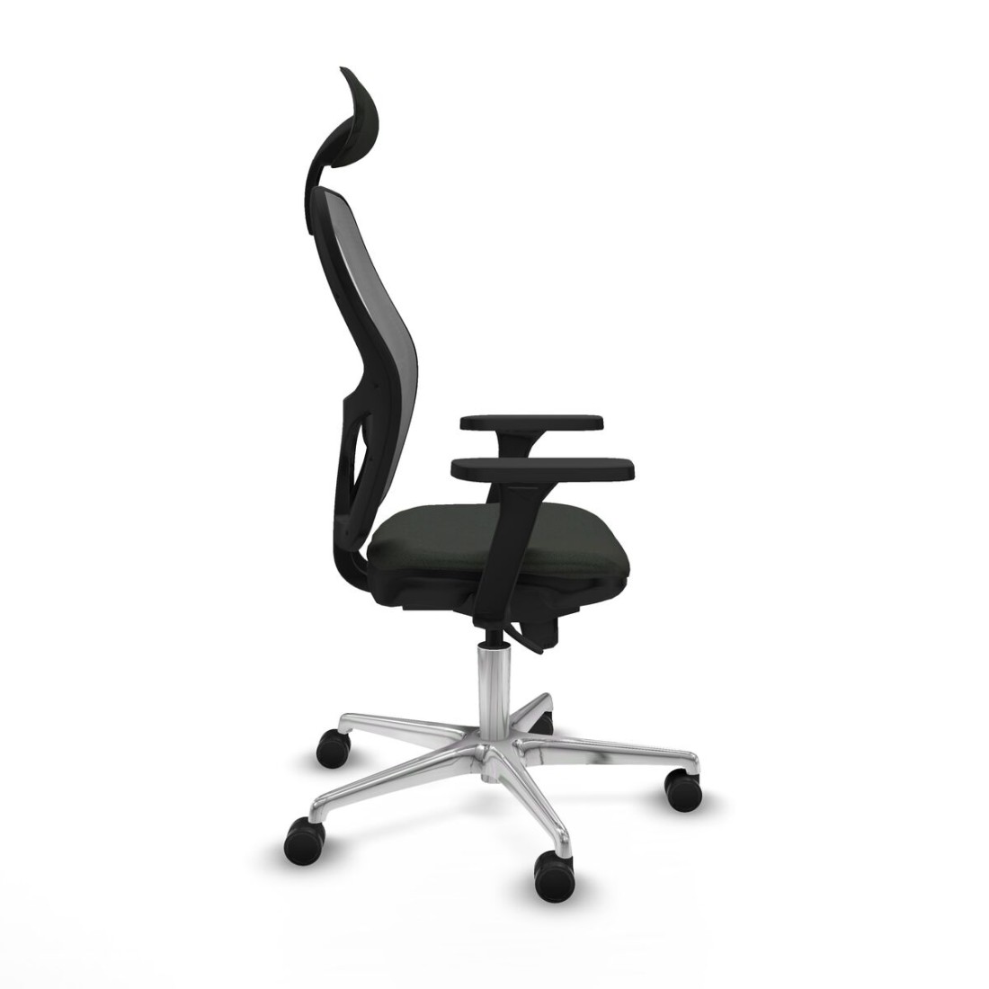 Piqueras y CrespoDer Bürostuhl mit Kopfstütze 3D086N1 von Piqueras y Crespo wurde entwickelt, um ein optimales Gleichgewicht zwischen Komfort, Langlebigkeit und Funktionalität in anspruchsvollen Arbeitsumgebungen zu bieten. Dieser Bürostuhl in Schwarz besticht durch seine Konstruktion für den intensiven Gebrauch von bis zu 24 Stunden am Stück und trägt ein Maximalgewicht von 120 kg, was seine Robustheit und Qualität bestätigt. Er verfügt über 3D verstellbare Armlehnen, die sich den Bewegungen des Nutzers anpassen und eine ergonomische, individuelle Unterstützung gewährleisten, sowie eine feste Kopfstütze, die stabilen Nackenhalt bietet und Ermüdung im oberen Nacken- und Schulterbereich vorbeugt. Der Synchronmechanismus mit 5 Positionen erlaubt die Einstellung der Neigung von Rückenlehne und Sitz, um eine korrekte und bequeme Sitzhaltung während des Arbeitstages zu ermöglichen. Der Sitz ist höhenverstellbar von 48 bis 61 cm und passt sich verschiedenen Nutzern und Schreibtischen an, während die feste Rückenlehne für konstante Stabilität sorgt. Die Materialkombination aus hochverdichtetem Schaumstoff (50 mm, 50 Kg/m³) und einem Bezug aus atmungsaktivem Mesh und Stoff fördert eine gute Belüftung und angenehmen Sitzkomfort. Die polierte Aluminium-Fünfsternbasis mit 65 mm Nylonrollen mit Bremse sorgt für Mobilität und Sicherheit auf allen Bodenbelägen und ergänzt das funktionale, moderne Design. Der Stuhl entspricht der Norm UNE-EN-1335, einem Qualitäts- und Sicherheitsstandard für Büromöbel. Mit einem Gesamtgewicht von 18 kg und ergonomisch angepassten Maßen ist der Jorquera 3D086N1 eine praktische und zuverlässige Wahl für alle, die einen schwarzen Bürostuhl mit Armlehnen und Höhenverstellung suchen, der Lendenwirbelstütze, Stabilität und Komfort bei langen Schichten garantiert. Dieser Stuhl bietet eine ausgewogene, professionelle Lösung für Arbeitsplätze, bei denen Komfort und Belastbarkeit unerlässlich sind.