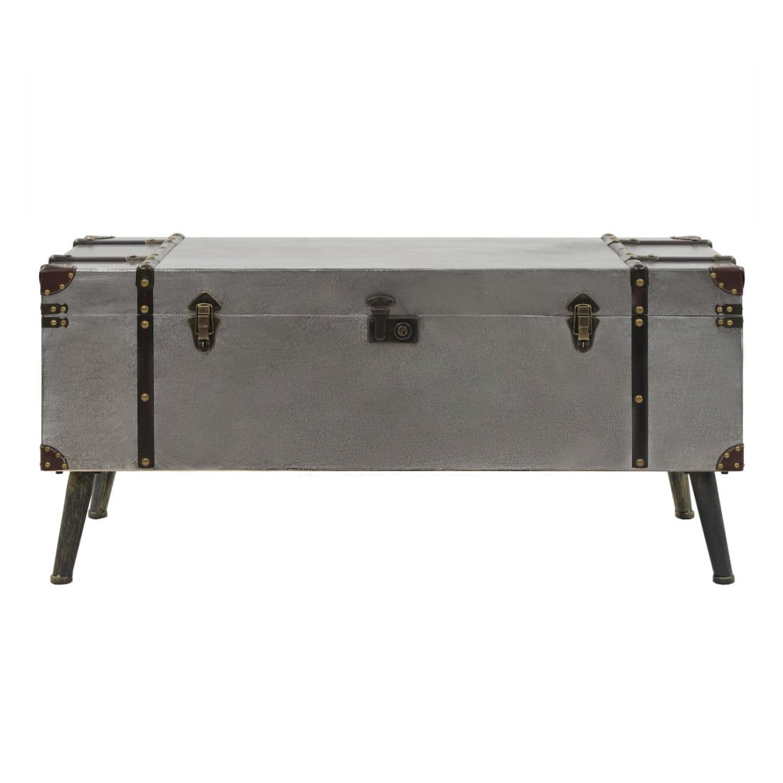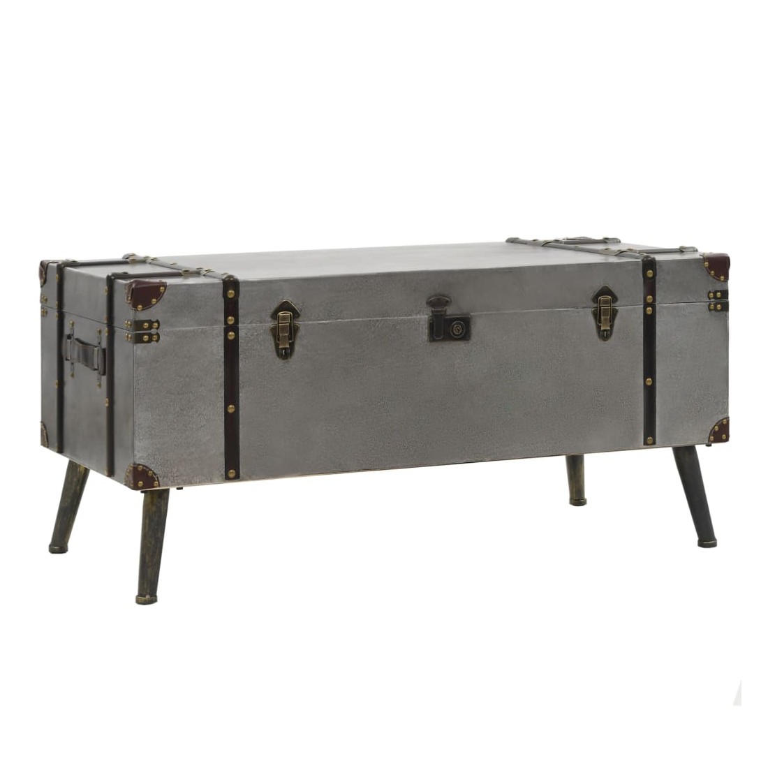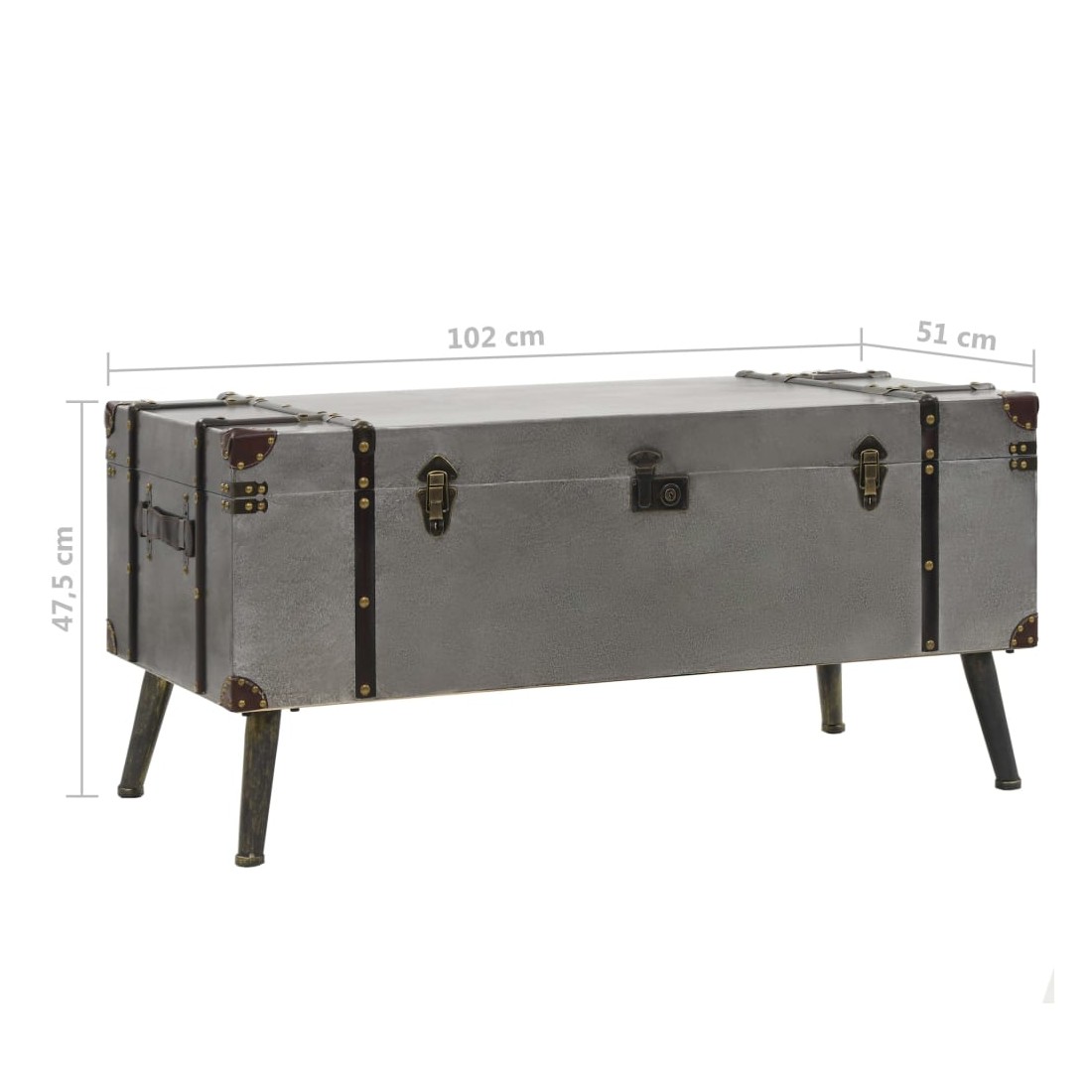 Cette table basse unique en forme de coffre de voyage ajoutera une touche d'élégance à votre décoration avec son design vintage spectaculaire. Elle peut également être utilisée comme table d'appoint ou table de bout. Cette table durable et belle est faite de MDF recouvert d'aluminium avec une doublure en tissu non tissé et de solides pieds en acier qui ajoutent à son charme rustique. Le dessus de table est idéal pour placer des boissons, des vases, des plantes en pot, des paniers de fruits et d'autres objets décoratifs. Cette boîte de rangement a deux compartiments intérieurs qui offrent suffisamment d'espace pour ranger les couvertures jetables, les livres, les magazines, les télécommandes et tout autre article que vous aimeriez garder cachés à la vue et à portée de main. Grâce à ses poignées douces et confortables, la table basse sous forme de coffre peut être facilement déplacée dans votre salon. L'assemblage de cet article est facile.