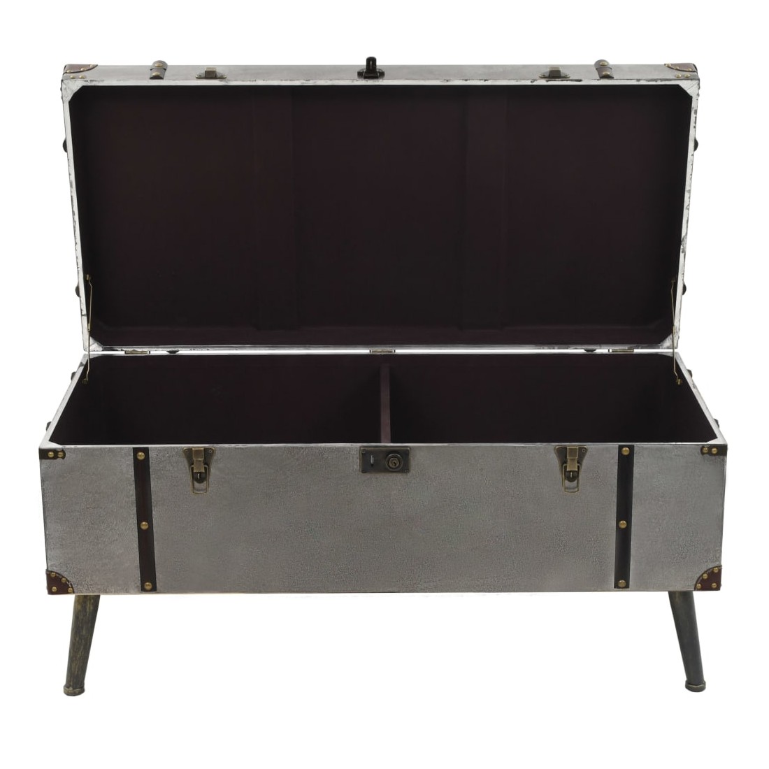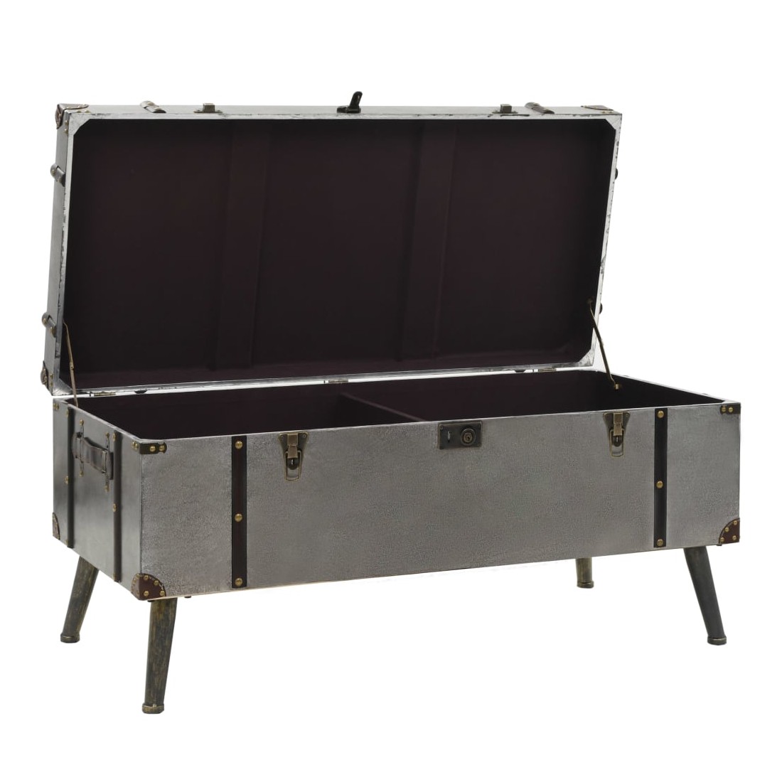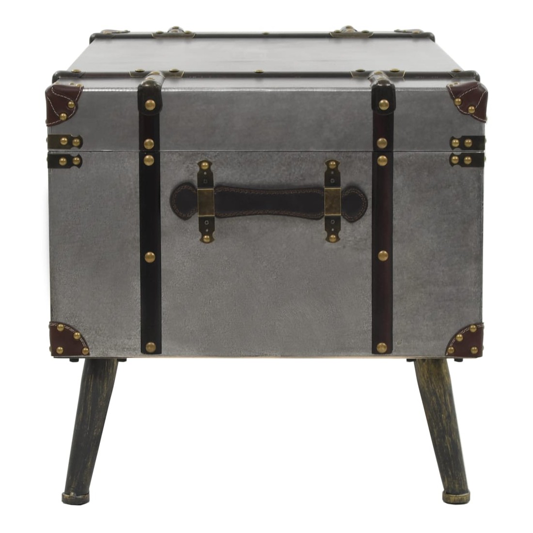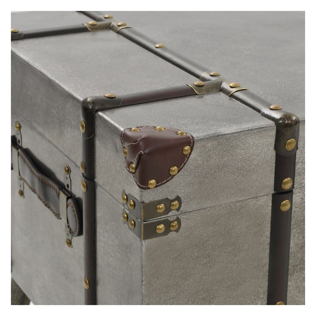 Cette table basse unique en forme de coffre de voyage ajoutera une touche d'élégance à votre décoration avec son design vintage spectaculaire. Elle peut également être utilisée comme table d'appoint ou table de bout. Cette table durable et belle est faite de MDF recouvert d'aluminium avec une doublure en tissu non tissé et de solides pieds en acier qui ajoutent à son charme rustique. Le dessus de table est idéal pour placer des boissons, des vases, des plantes en pot, des paniers de fruits et d'autres objets décoratifs. Cette boîte de rangement a deux compartiments intérieurs qui offrent suffisamment d'espace pour ranger les couvertures jetables, les livres, les magazines, les télécommandes et tout autre article que vous aimeriez garder cachés à la vue et à portée de main. Grâce à ses poignées douces et confortables, la table basse sous forme de coffre peut être facilement déplacée dans votre salon. L'assemblage de cet article est facile.