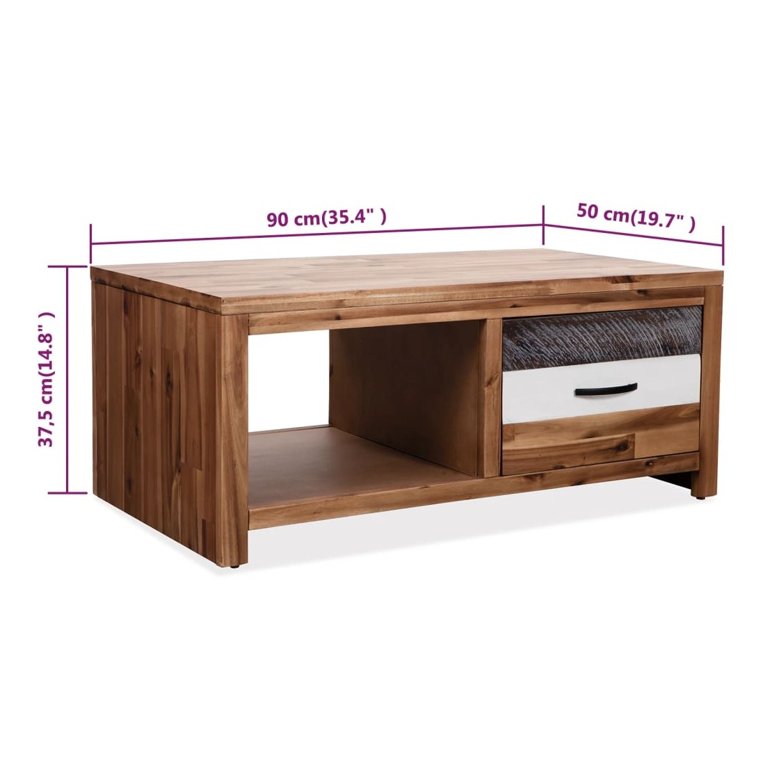 Table basse Bois d'acacia massif 90x50x37,5 cm
