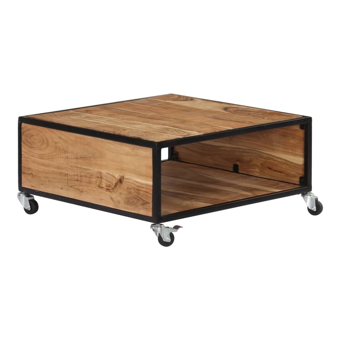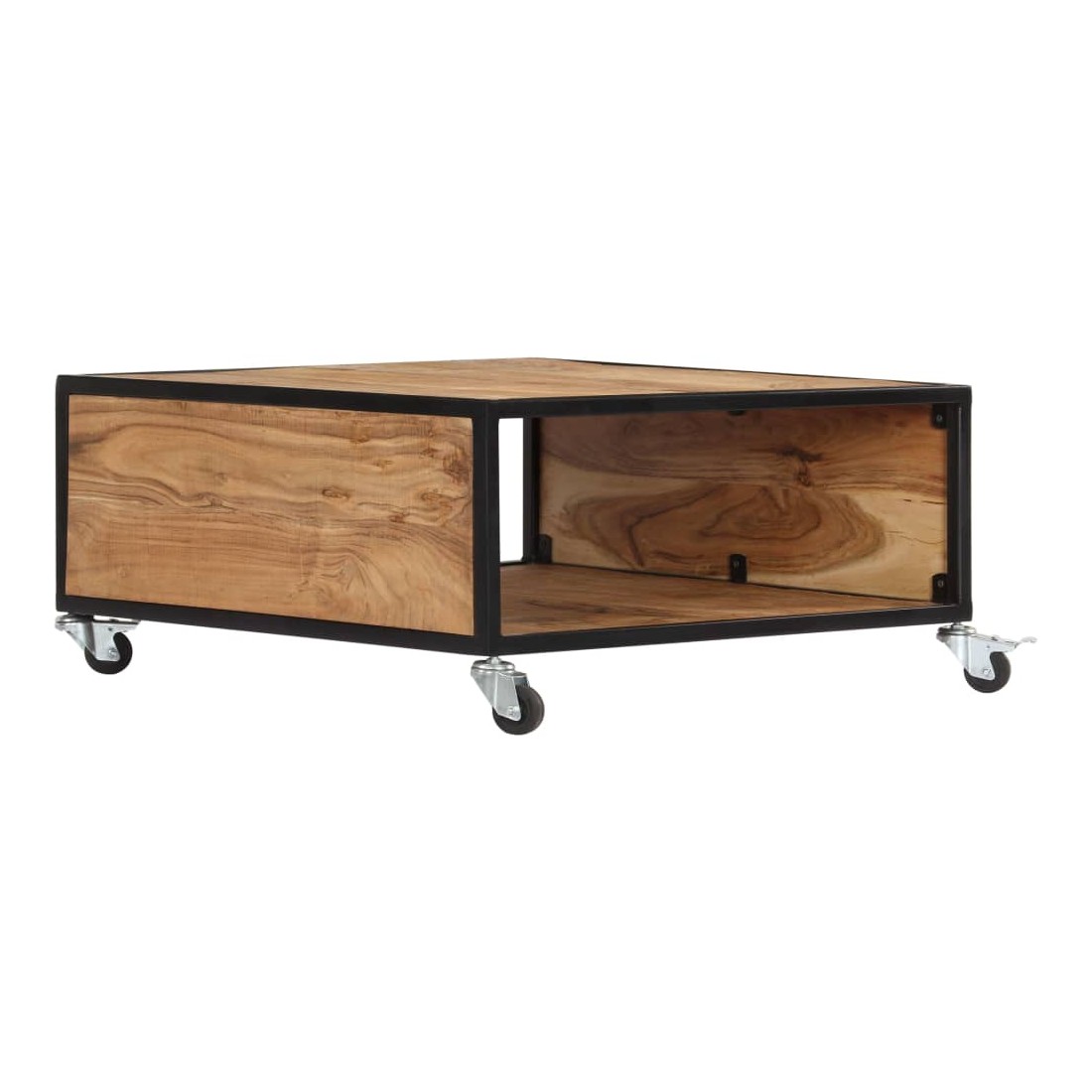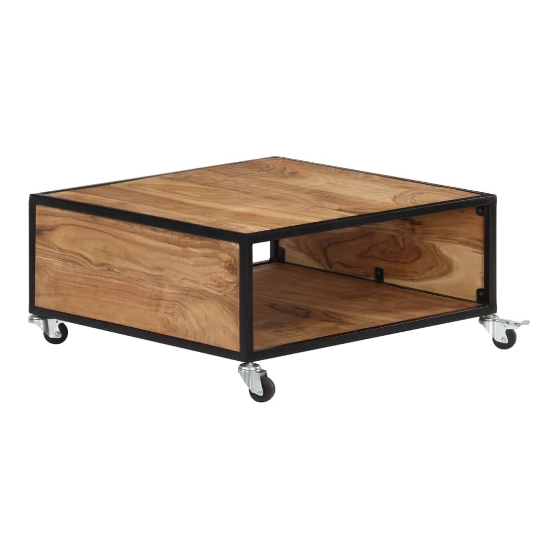 Cette table basse dégage un charme rustique. Elle apportera certainement une touche supplémentaire à votre intérieur. La table basse est en bois d’acacia solide fini par polissage et laquage pour lui donner un aspect raffiné. Le savoir-faire et les grains de bois raffinés font de chaque meuble un objet unique et légèrement différent l'un de l'autre. Cette table d'appoint comporte un compartiment, offrant un espace commode pour ranger vos appareils multimédia, vos livres, ainsi que divers autres objets. Équipée de 4 roulettes, la table basse en bois est facile à déplacer. Remarque importante : les grains varient d'une pièce à l'autre, rendant chaque pièce unique ; La livraison est aléatoire, ce qui garantit l'exclusivité et l'individualité de votre produit.