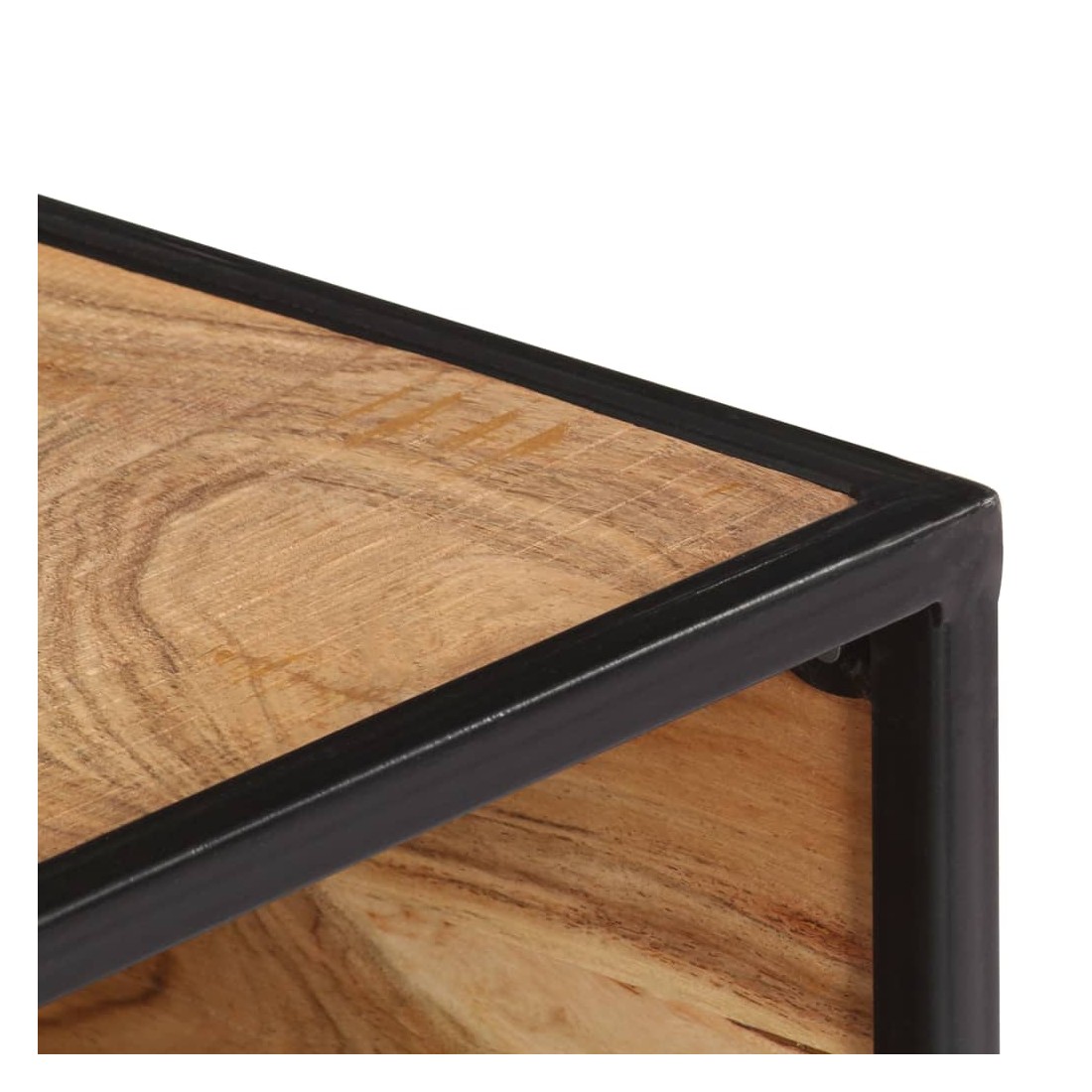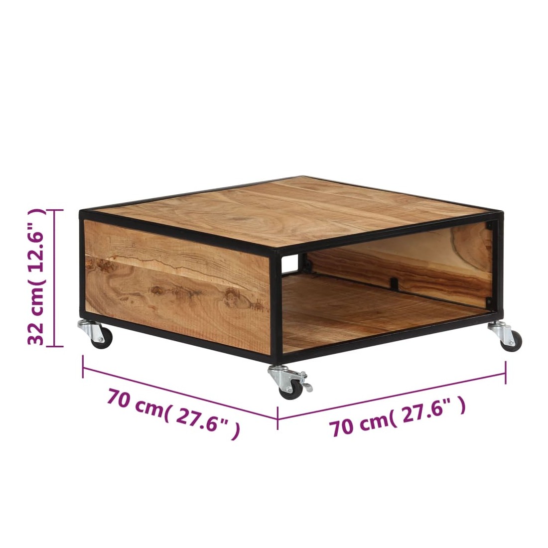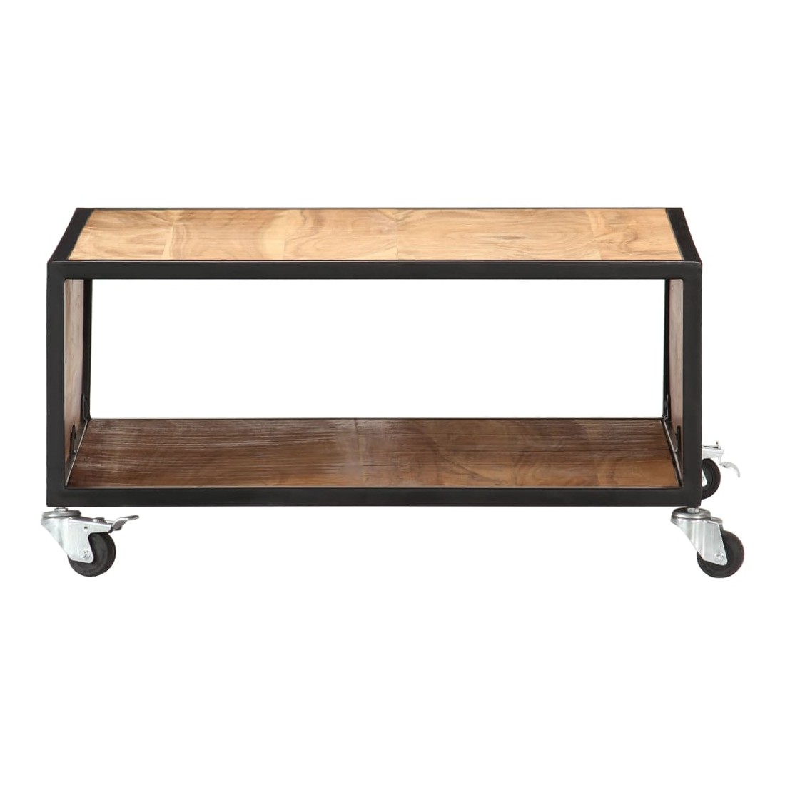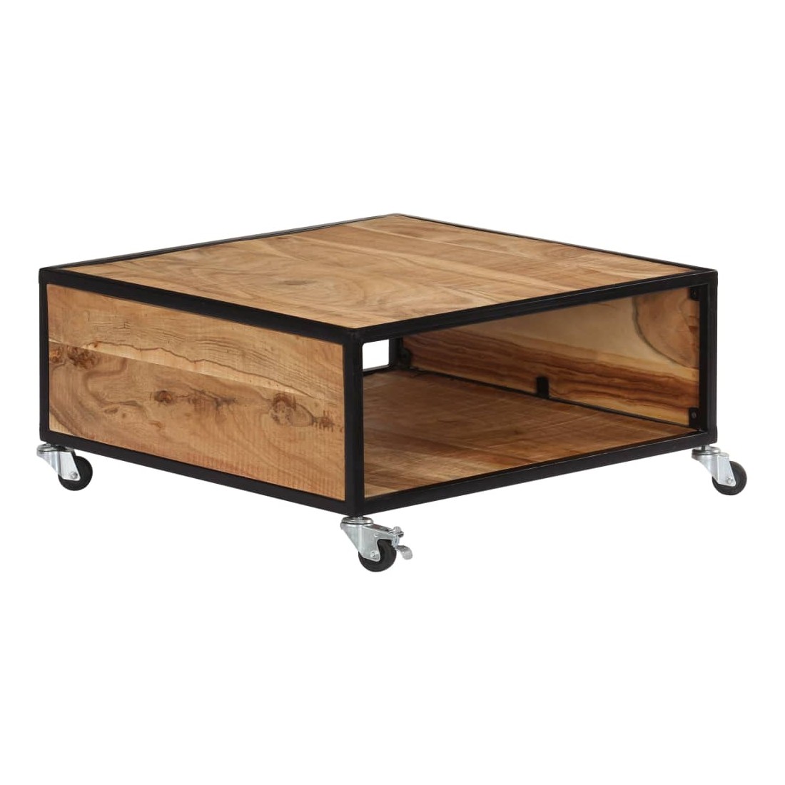 Cette table basse dégage un charme rustique. Elle apportera certainement une touche supplémentaire à votre intérieur. La table basse est en bois d’acacia solide fini par polissage et laquage pour lui donner un aspect raffiné. Le savoir-faire et les grains de bois raffinés font de chaque meuble un objet unique et légèrement différent l'un de l'autre. Cette table d'appoint comporte un compartiment, offrant un espace commode pour ranger vos appareils multimédia, vos livres, ainsi que divers autres objets. Équipée de 4 roulettes, la table basse en bois est facile à déplacer. Remarque importante : les grains varient d'une pièce à l'autre, rendant chaque pièce unique ; La livraison est aléatoire, ce qui garantit l'exclusivité et l'individualité de votre produit.