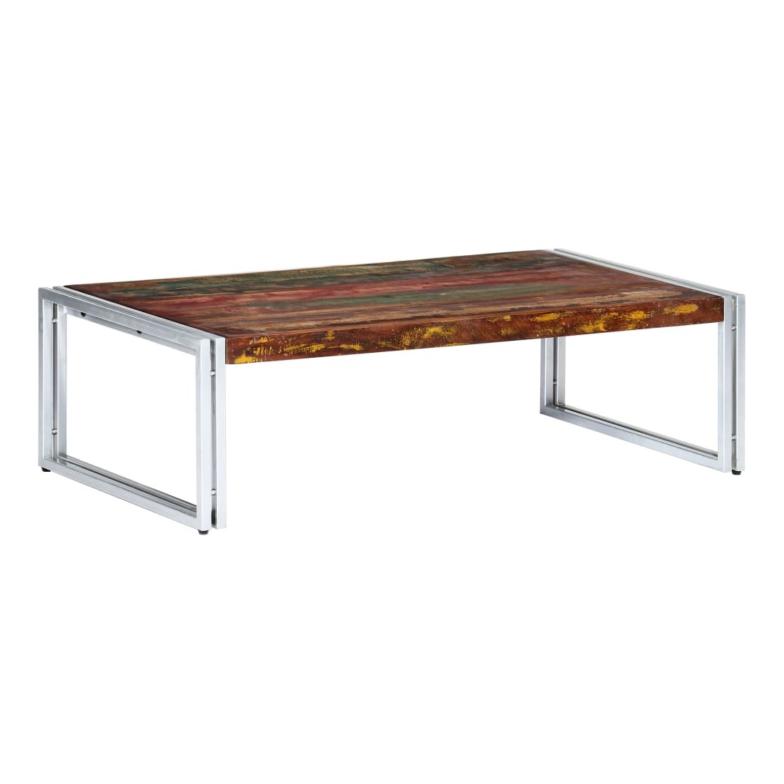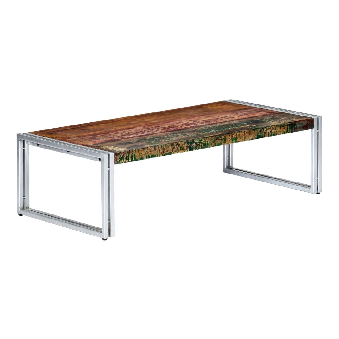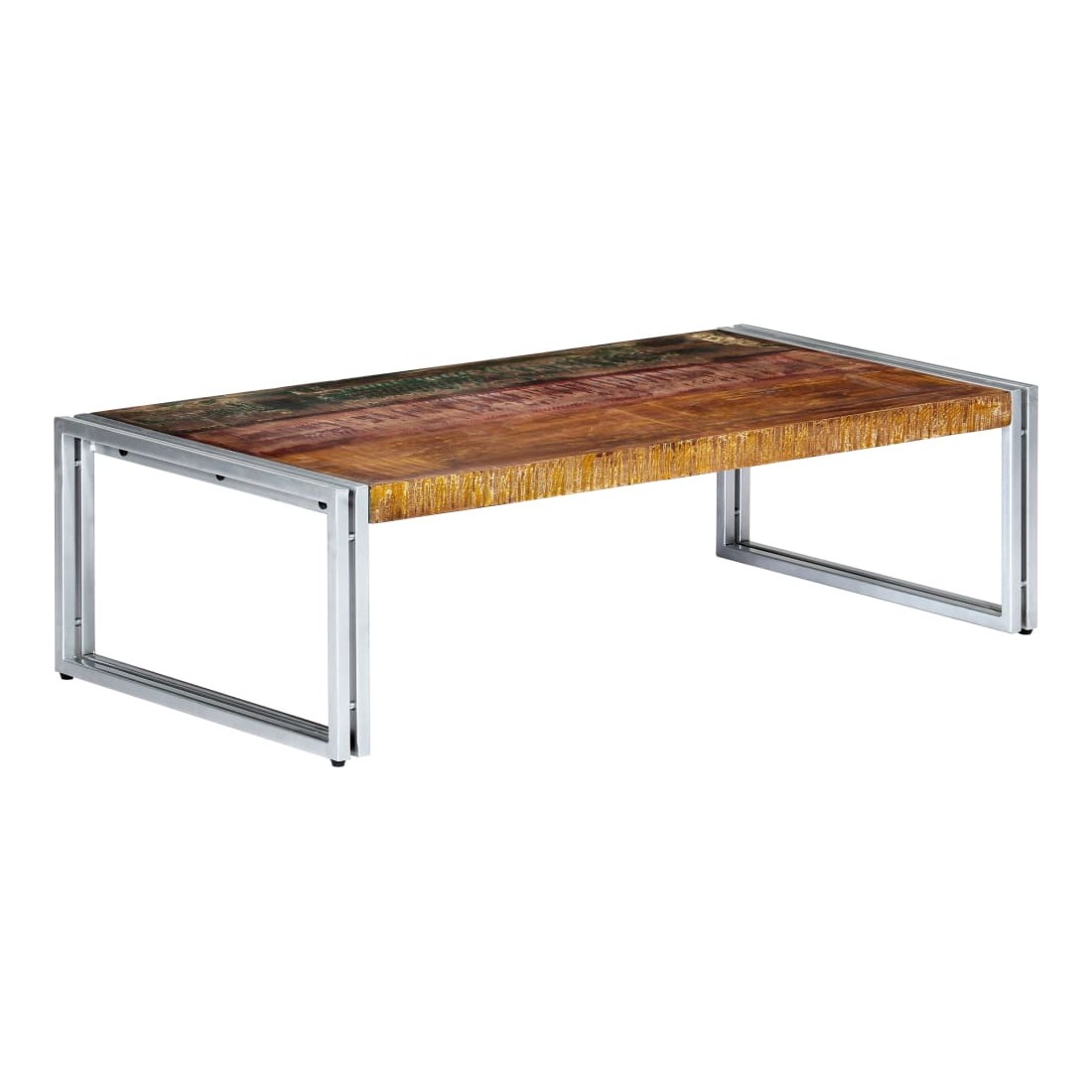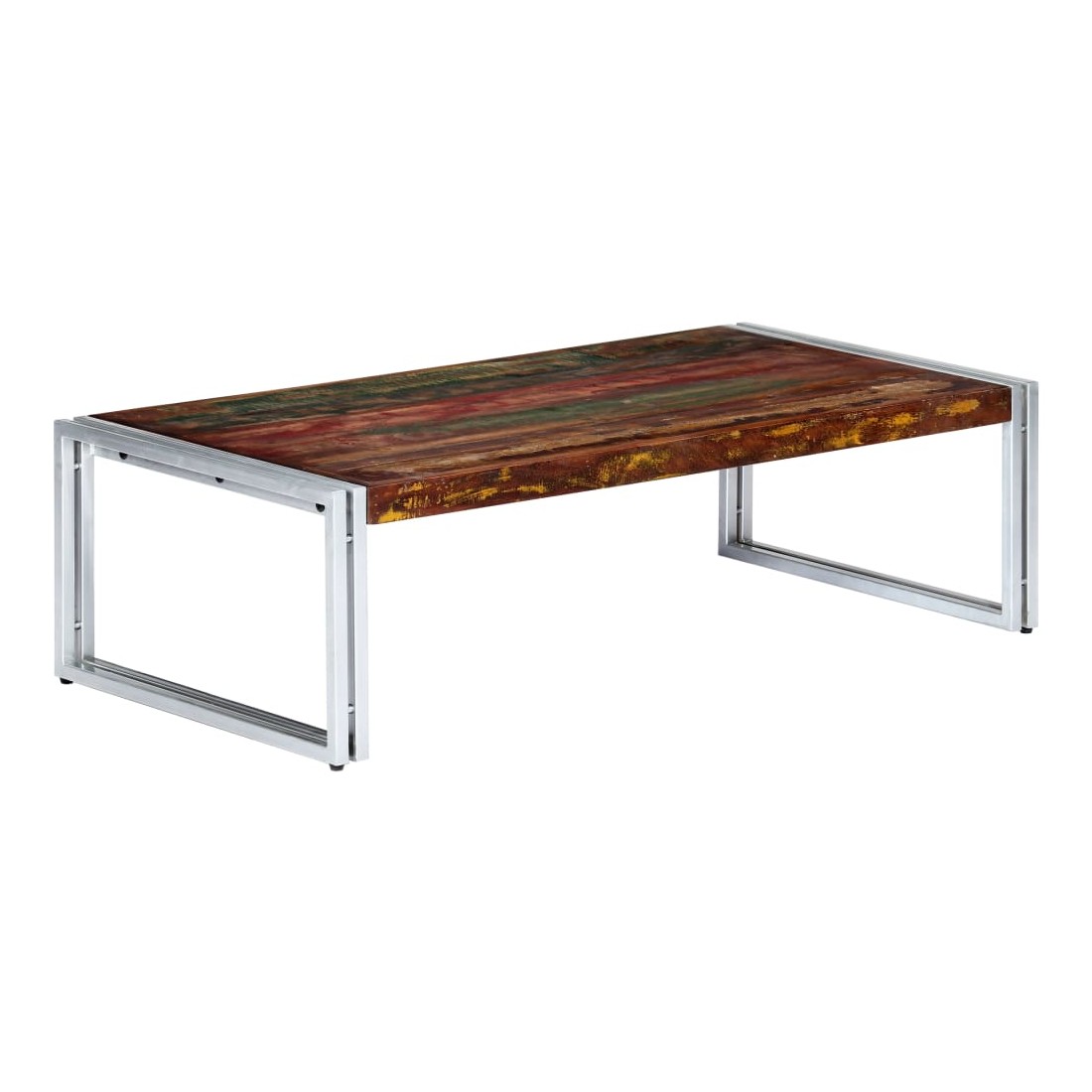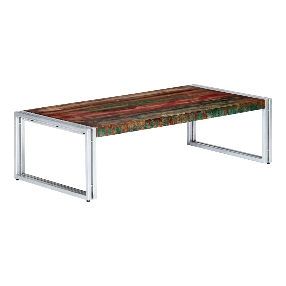 À la fois sophistiquée et élégante, cette table basse en bois donne un clin d'œil au charme vintage et au style industriel avec son bois de récupération massif et ses pieds en fer enduit de poudre. La table de salon est faite de bois de récupération massif provenant des solives, des planchers et des poutres de soutien d'anciens bâtiments démolis et peut être composée de différents types de bois tels que le pin, le teck, le hêtre, le chêne, le cèdre, le bois de manguier, l'acacia, etc. Cela signifie que le bois de récupération conserve les caractéristiques de ces différents types de bois. Le bois de récupération est déjà vieilli, patiné et séché, donc il ne rétrécit pas et ne se plie pas. Le savoir-faire exquis et les grains de bois esthétiquement attrayants rendent chaque meuble unique